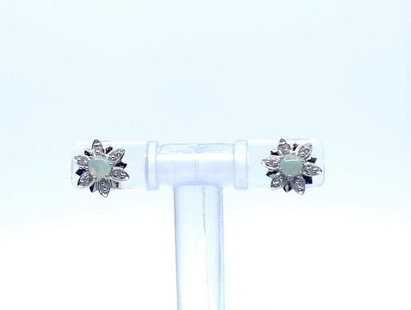 10K White Gold Opal & Diamond Earring