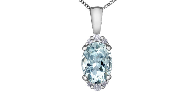 Colgante de oro blanco de 10 quilates con aguamarina de forma ovalada y diamante de 0,05 quilates - 18"