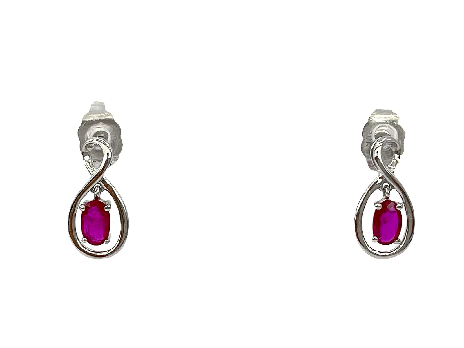 Aretes de oro blanco de 10 quilates con forma ovalada y rubí