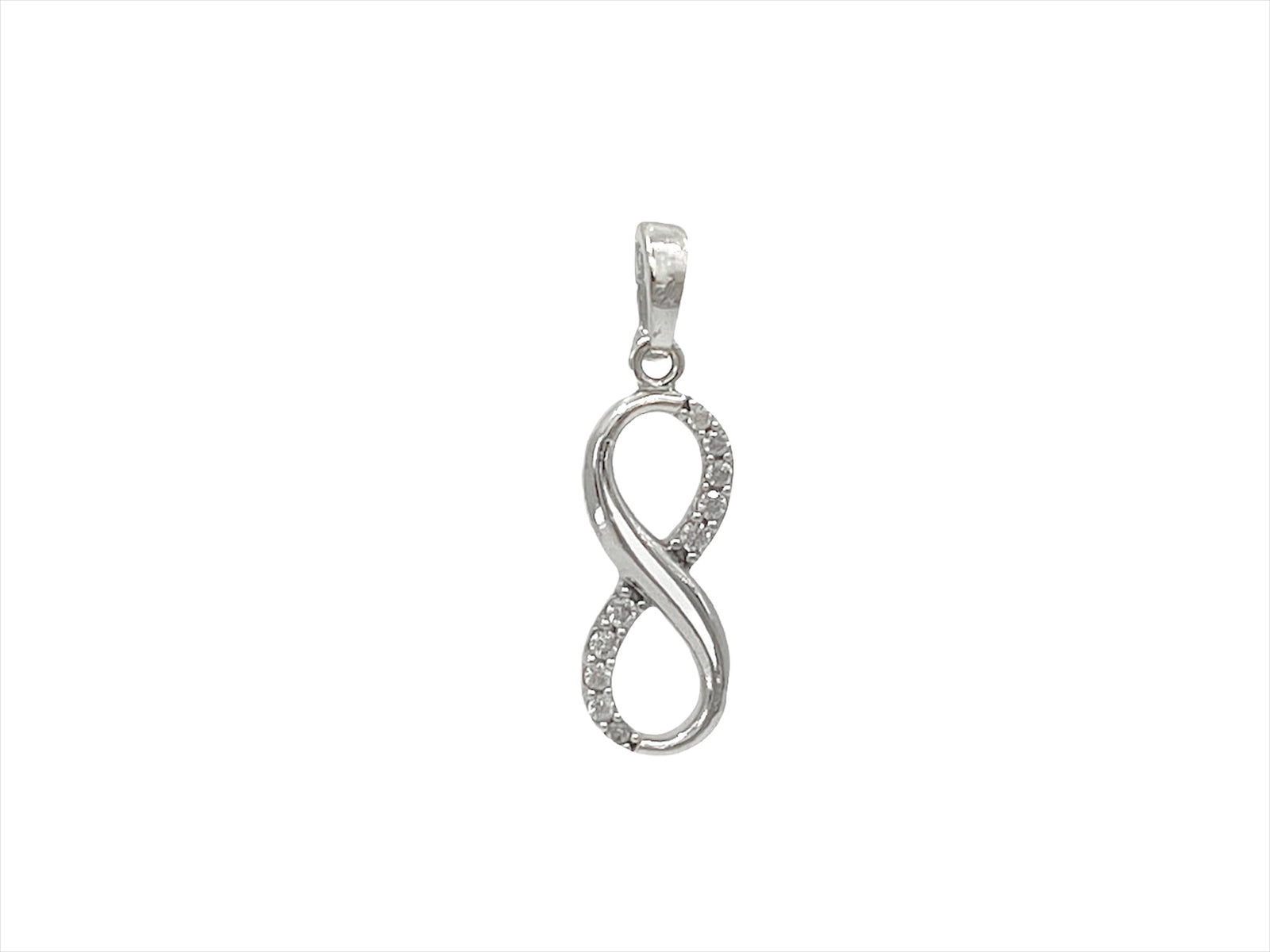 Dije de circonita cúbica infinita de oro blanco de 10 quilates: 21 mm x 5 mm