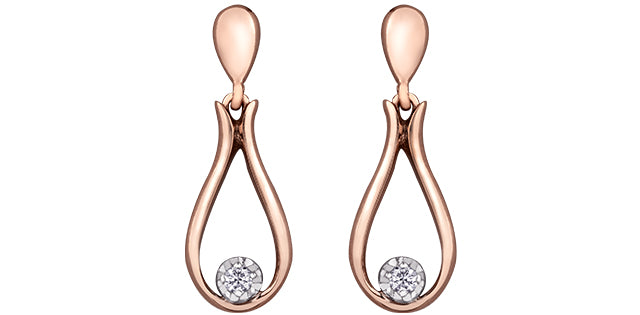 Pendientes colgantes de diamantes canadienses de 0,06 quilates en oro rosa de 10 quilates