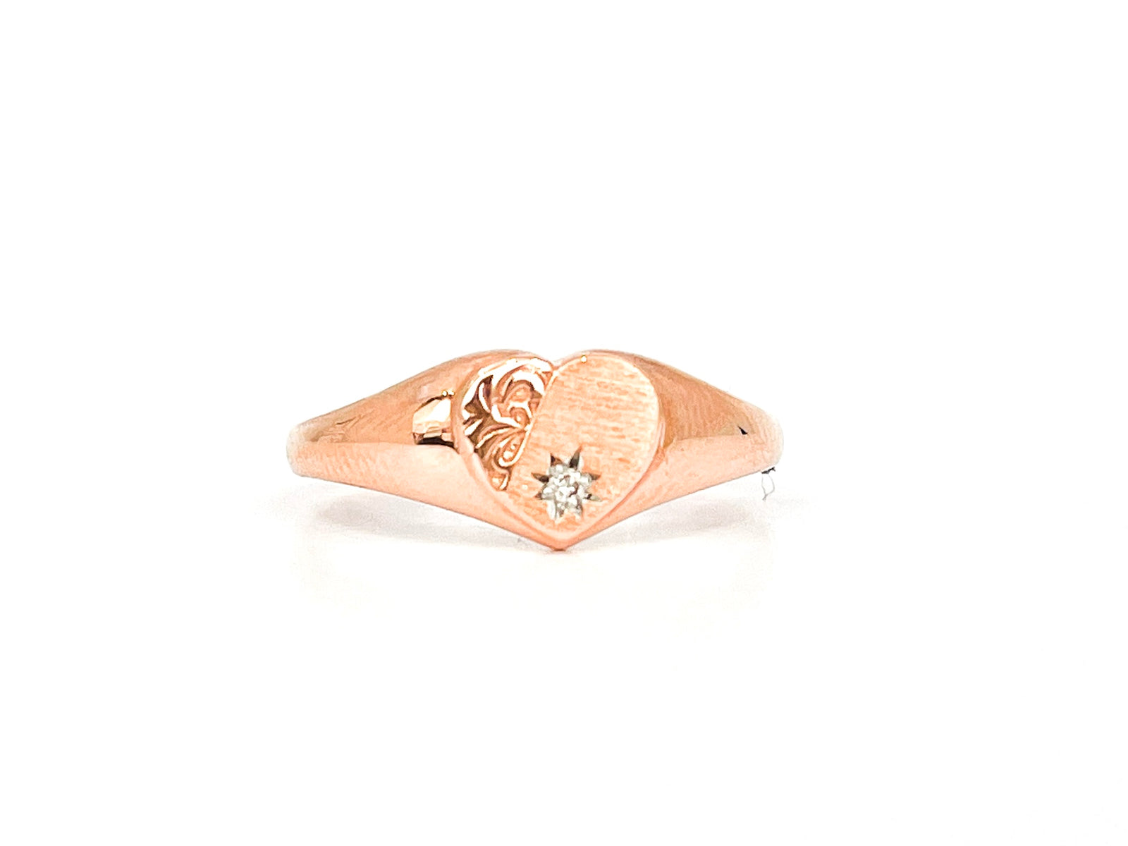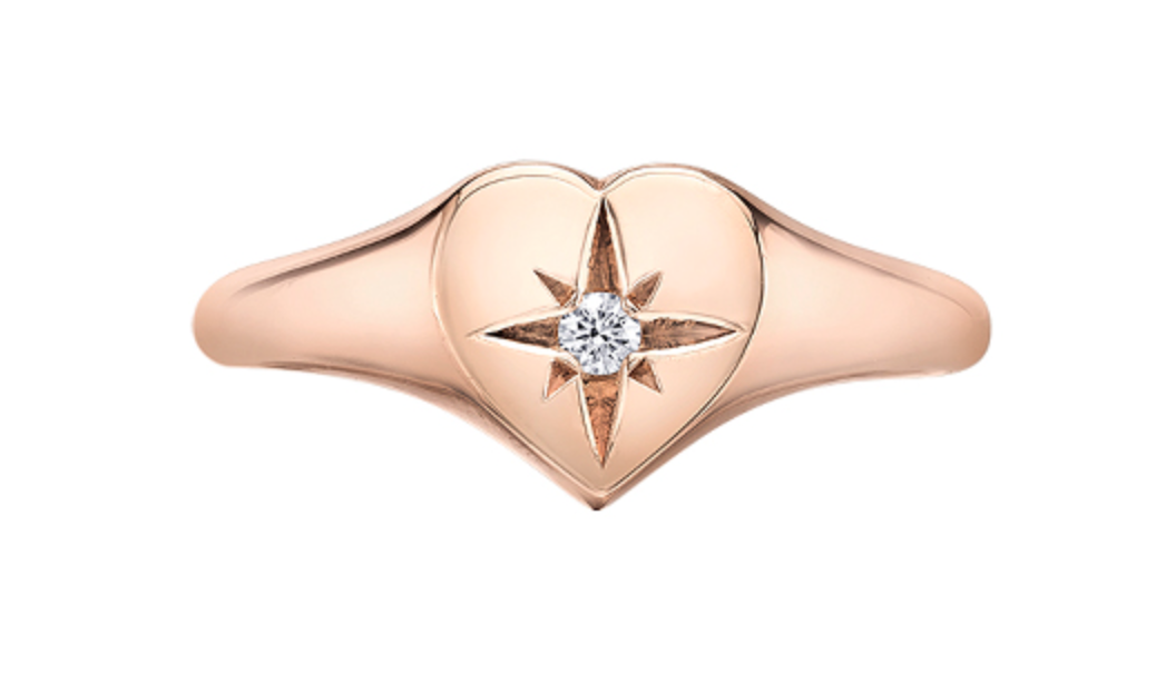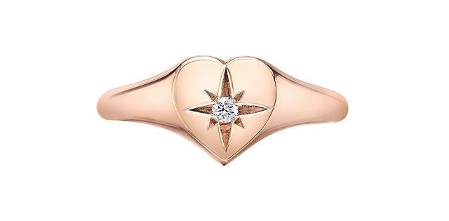 Anillo tipo sello con forma de corazón y diamantes de 0,01 quilates en oro rosa de 10 quilates, talla 6,5