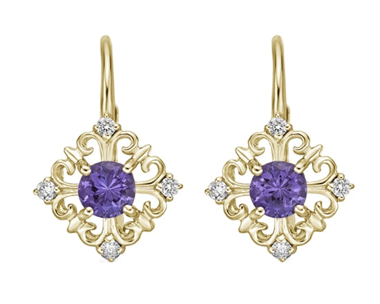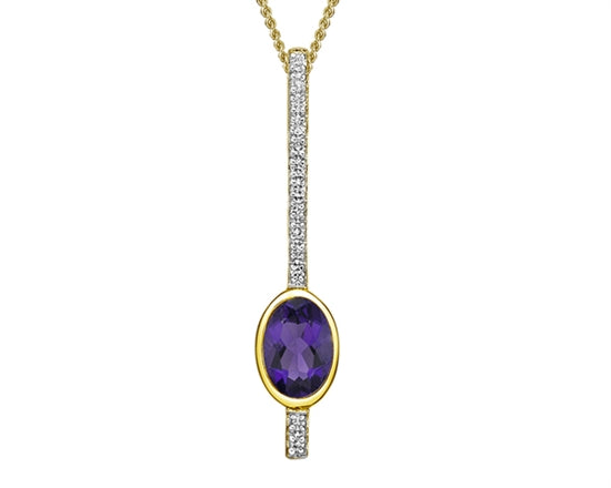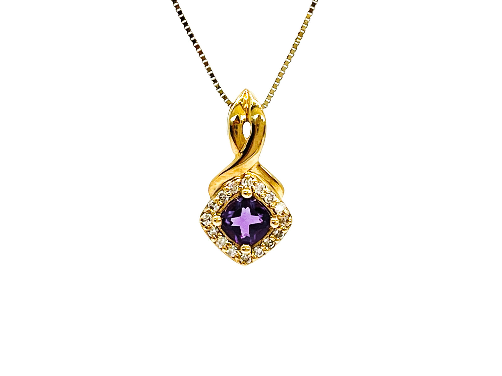 Colgante de oro amarillo de 10 quilates con amatista genuina de 0,33 quilates y halo de diamantes de 0,08 quilates, 18"