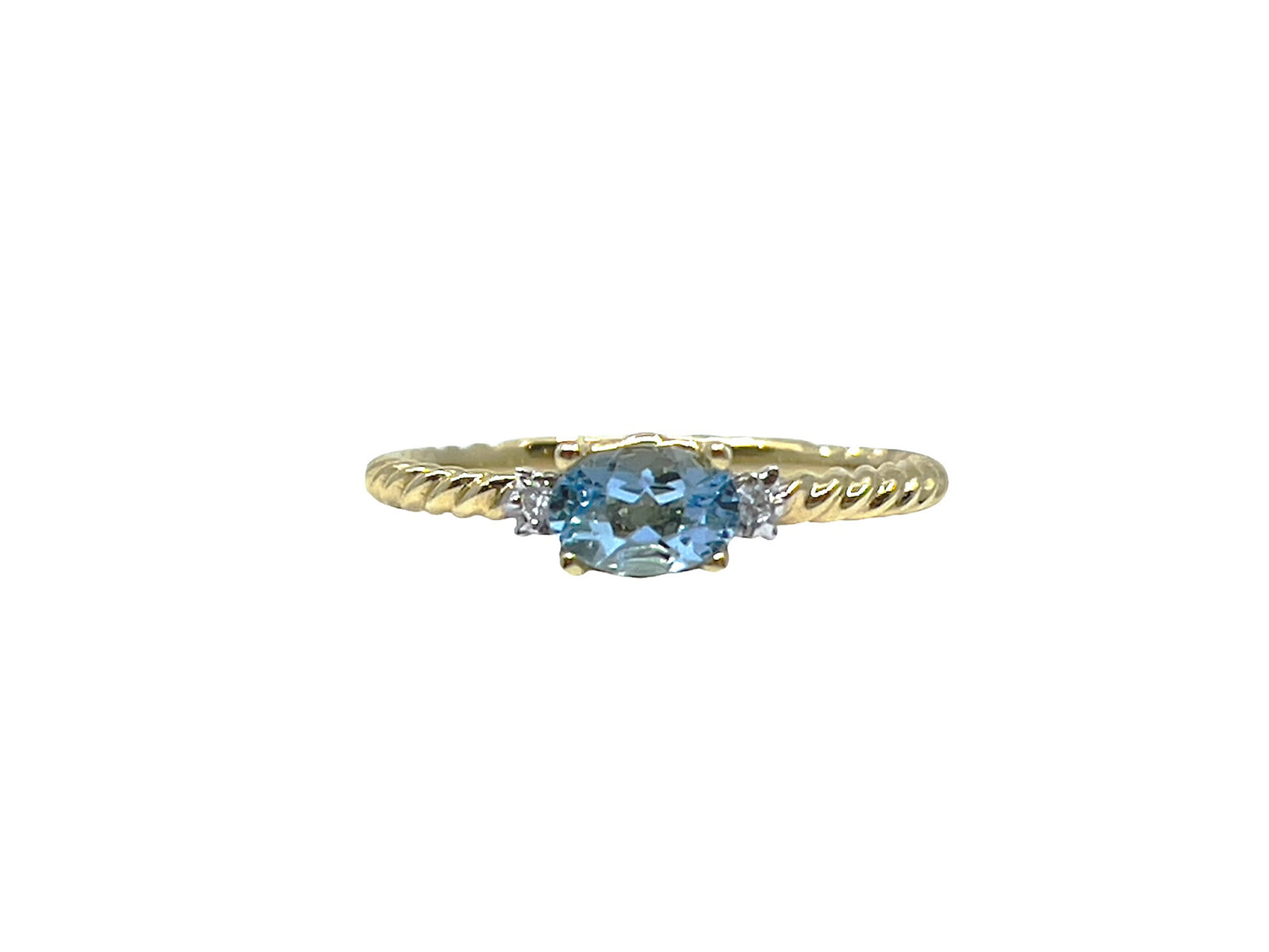 Anillo de oro amarillo de 10 quilates, 0,40 quilates, aguamarina auténtica de talla ovalada y diamante de 0,02 quilates, tamaño 6,5