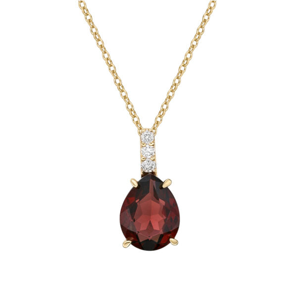 Colgante de oro amarillo de 10 quilates con granate de 2,0 quilates y diamante de 0,059 quilates con cadena Rolo - 18 pulgadas