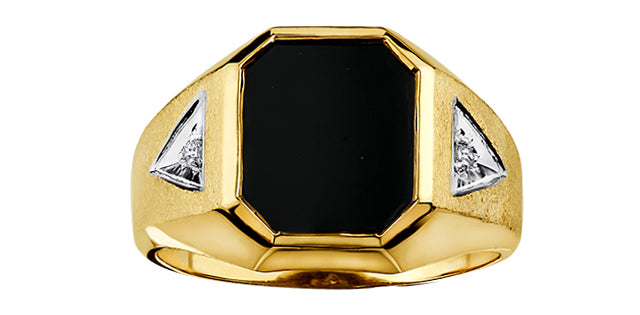 Anillo para caballero de oro amarillo de 10 quilates, ónix genuino de 12 x 10 mm y diamantes de 0,03 quilates, tamaño 10