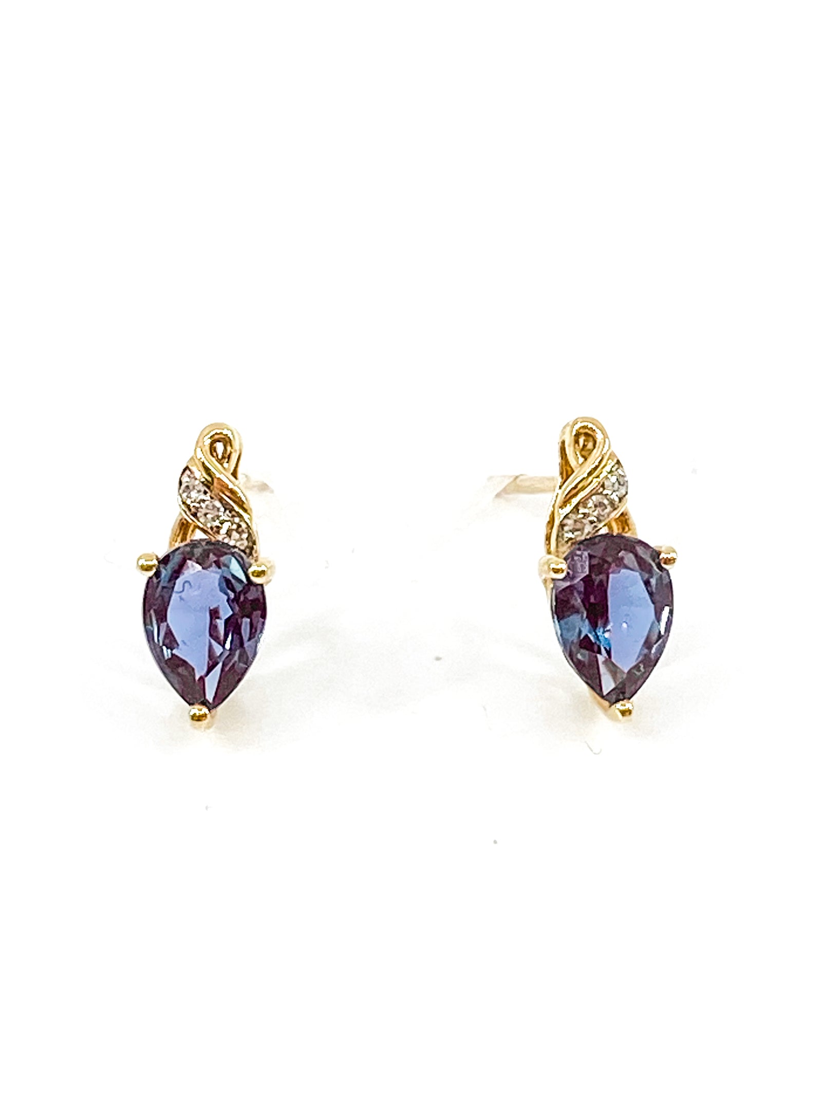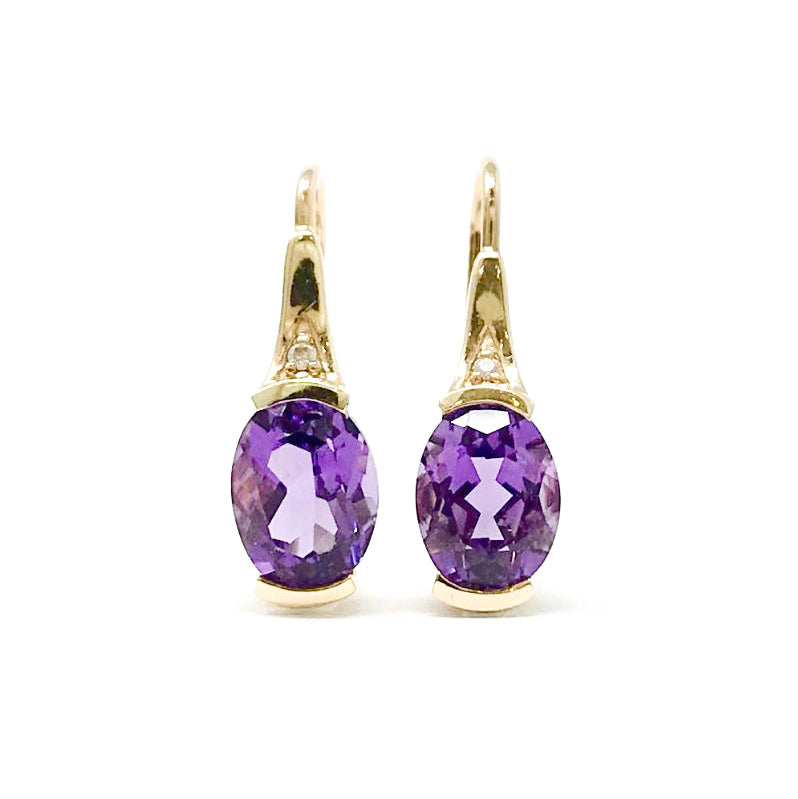 Pendientes colgantes / colgantes de oro amarillo de 10 quilates con amatista genuina de 2,40 quilates y diamantes de 0,02 quilates