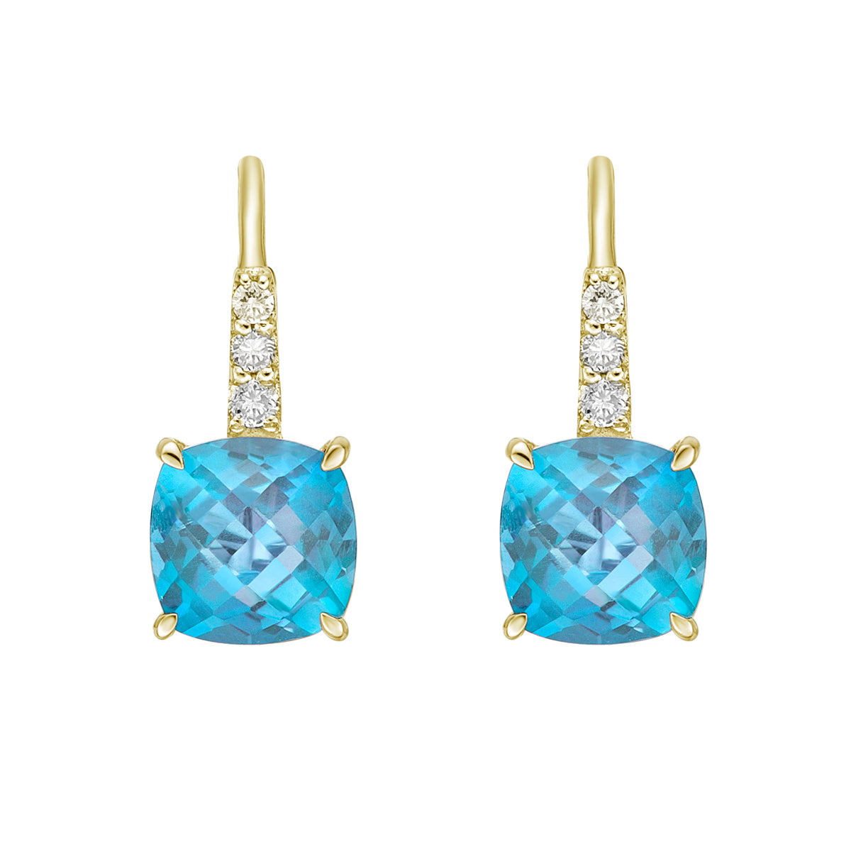10K Yellow Gold Blue Topaz Earrings with Diamond Accent