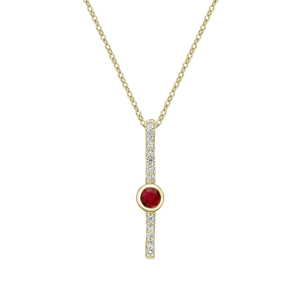 10K Yellow Gold Brushed Garnet & Diamond pendant