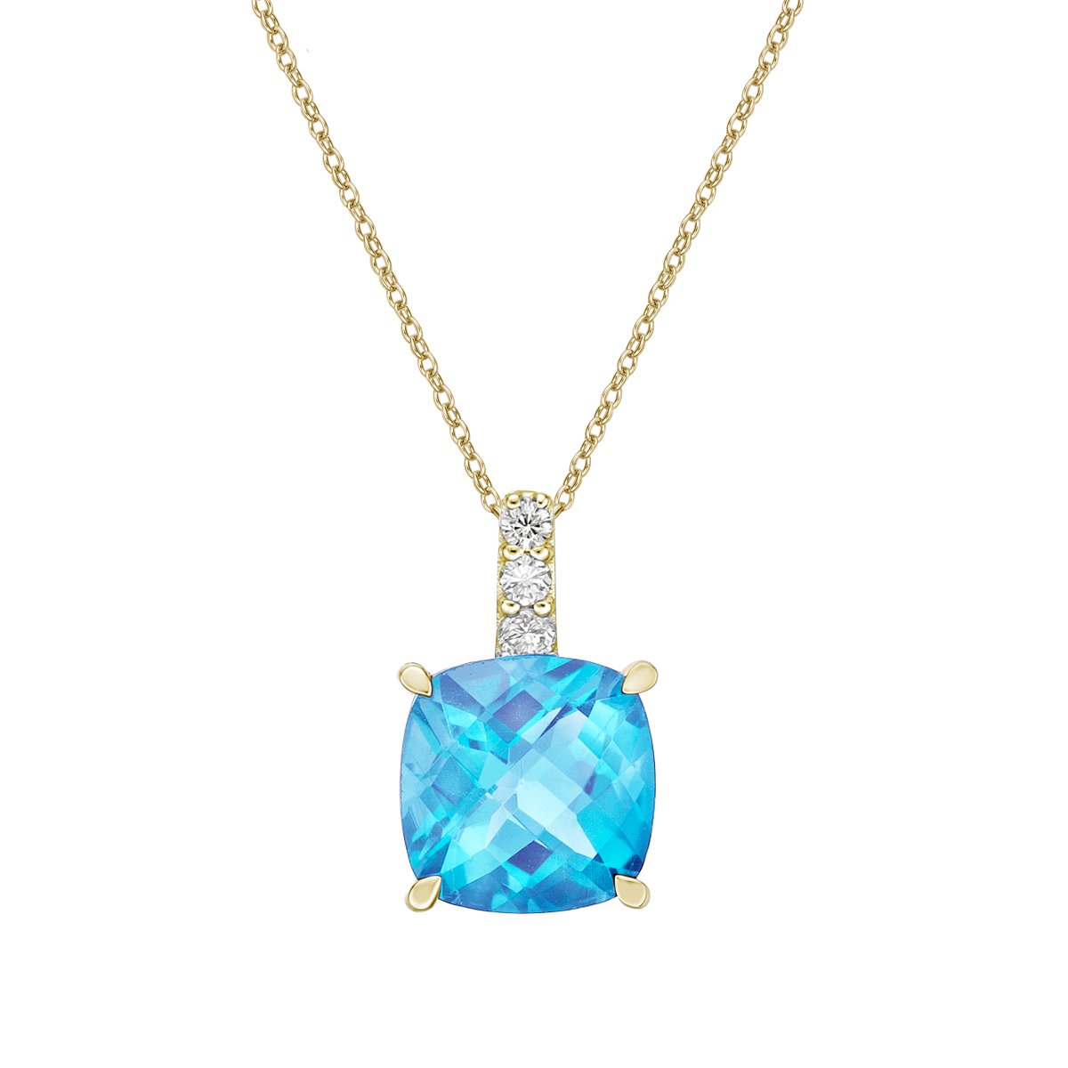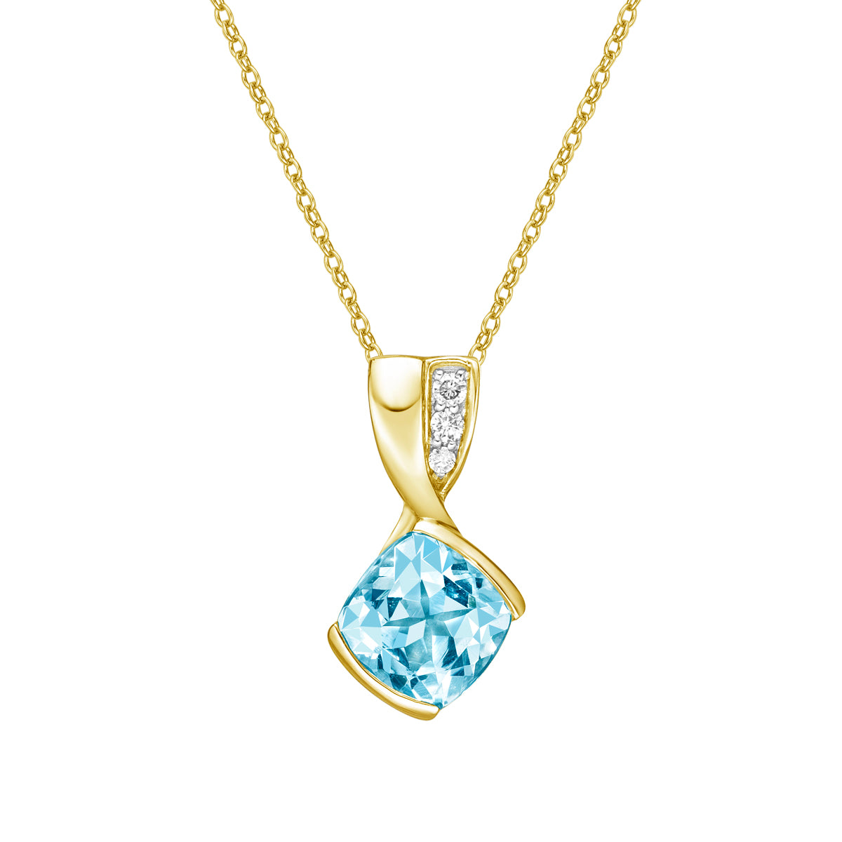 10K Yellow Gold Blue Topaz pendant with Diamond accent