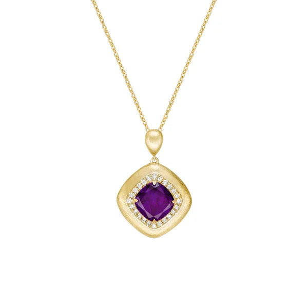10K Yellow Gold Brushed Amethyst & Diamond pendant $1,511.00 $1,511.00
