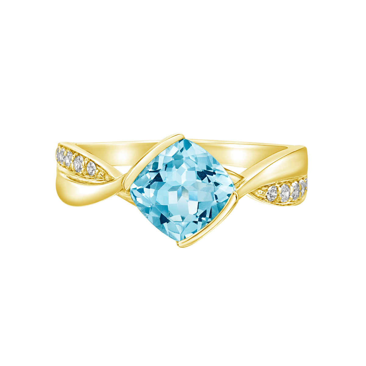 10K Yellow Gold Blue Topaz ring with Diamond accent