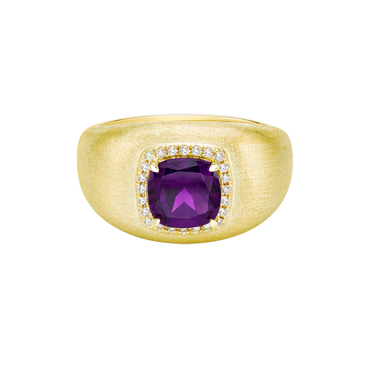 10K Yellow Gold Brushed Amethyst & Diamond ring