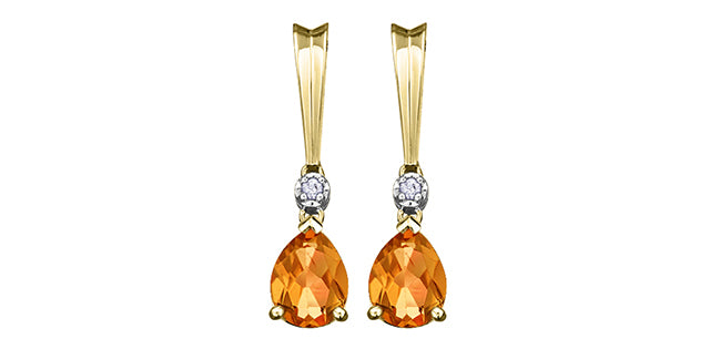 Pendientes de oro amarillo de 10 quilates con citrino auténtico y diamantes de 0,025 quilates