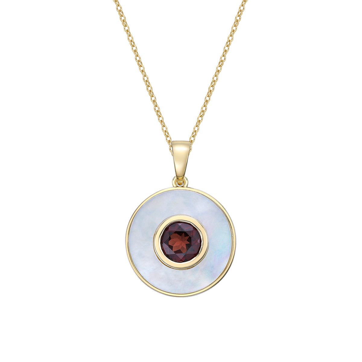 10K Yellow Gold Garnet and Mother of Pearl Earrings