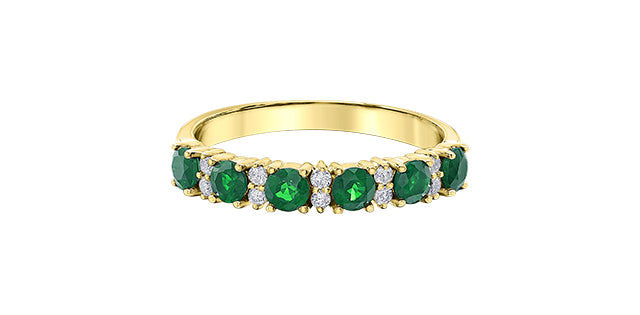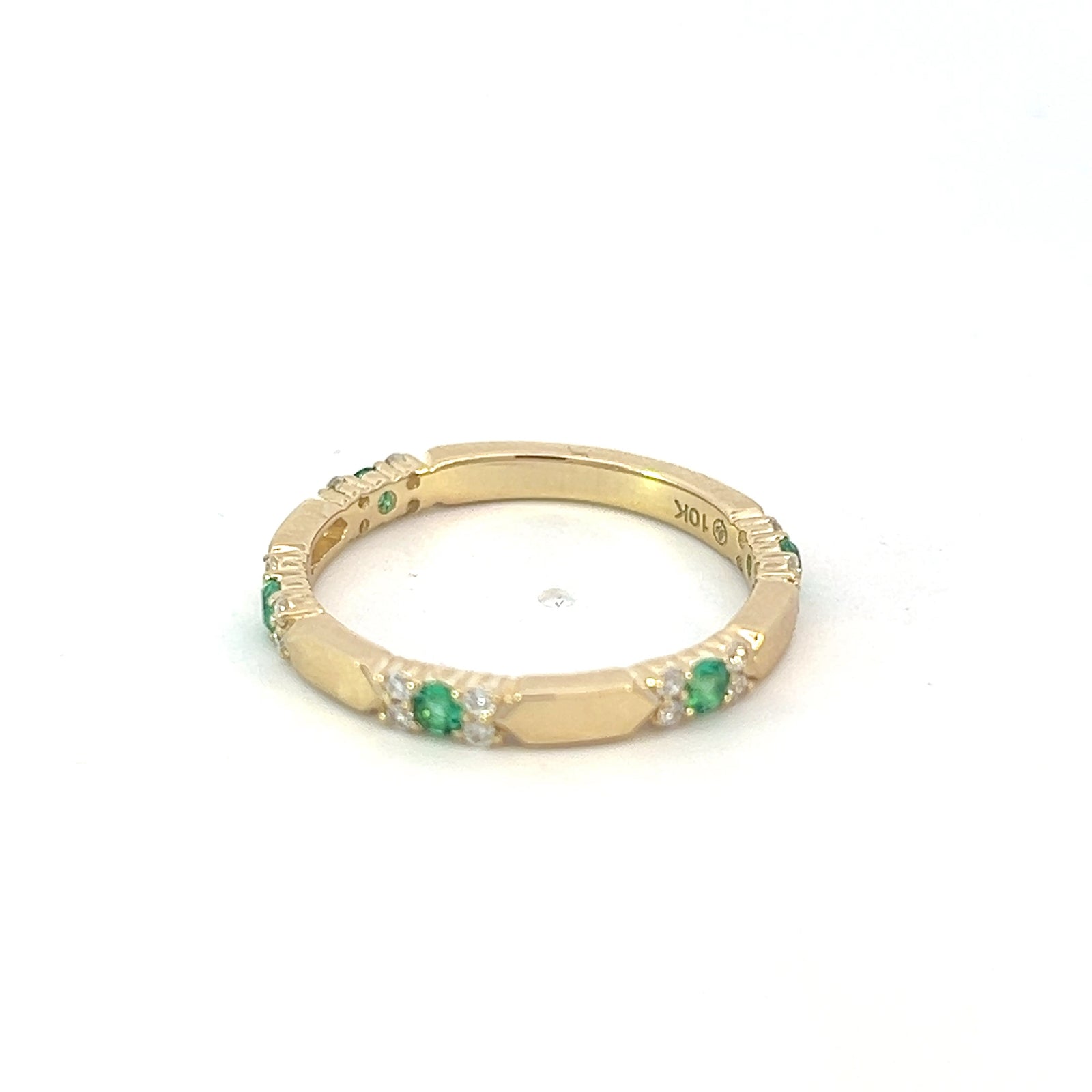Anillo/banda de oro amarillo de 10 quilates con esmeralda genuina y diamante de 0,13 quilates, tamaño 6,5