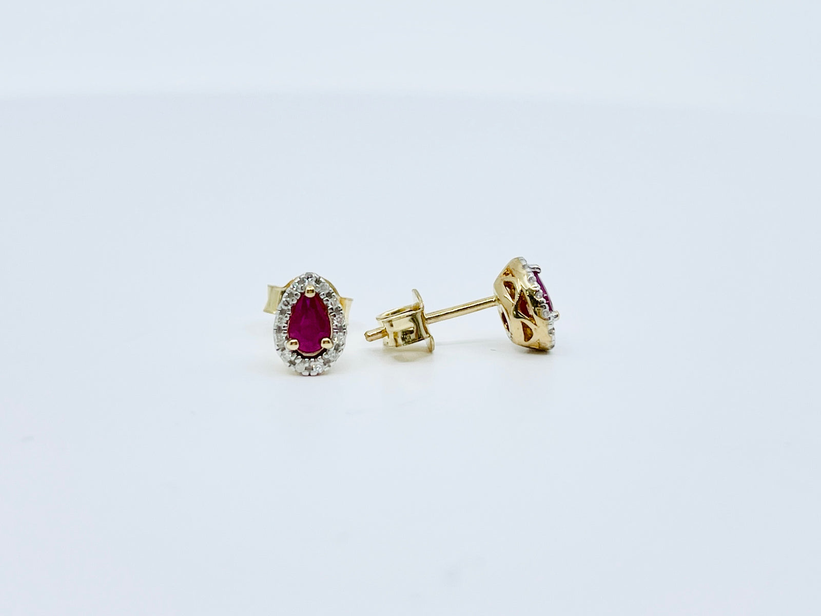 Aretes de oro amarillo de 10 quilates con rubí genuino