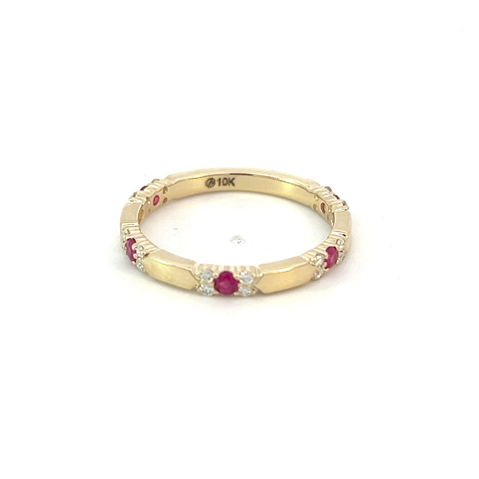 Anillo/banda de oro amarillo de 10 quilates con rubí auténtico y diamante de 0,13 quilates, tamaño 6,5
