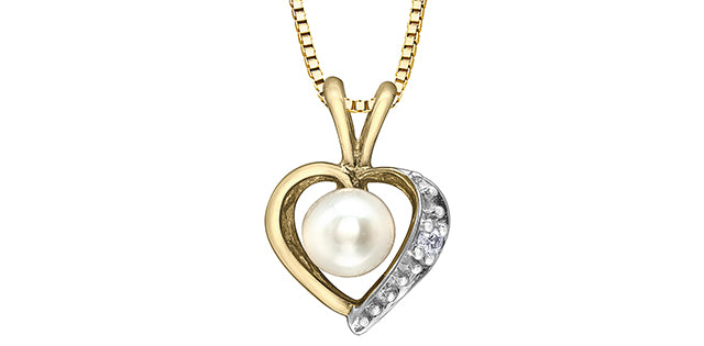 Collar de corazón de diamantes y perlas de oro amarillo de 10 quilates