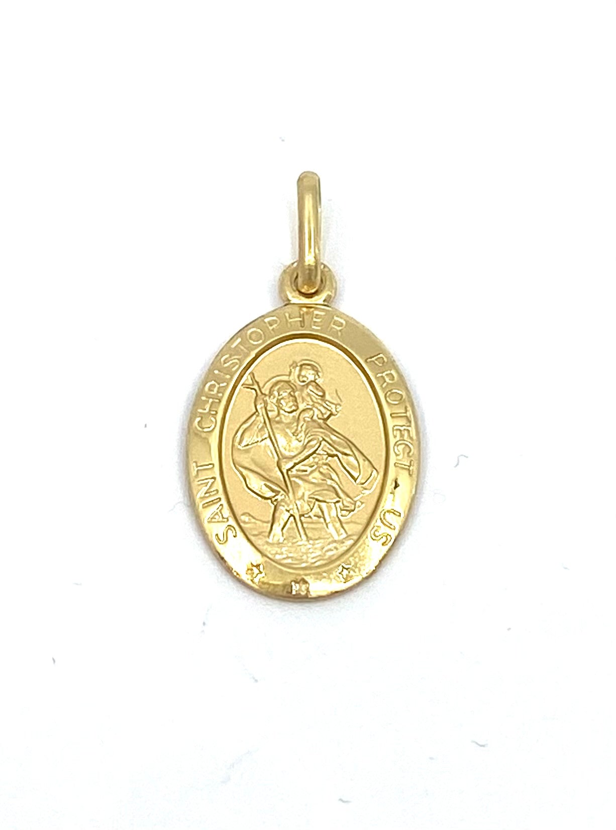 Dije 3D ovalado de San Cristóbal de oro amarillo de 10 quilates - 15x9 mm