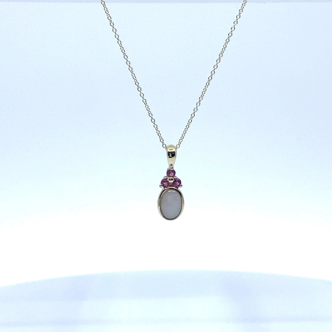 Colgante de oro amarillo de 10 quilates con ópalo y turmalina rosa