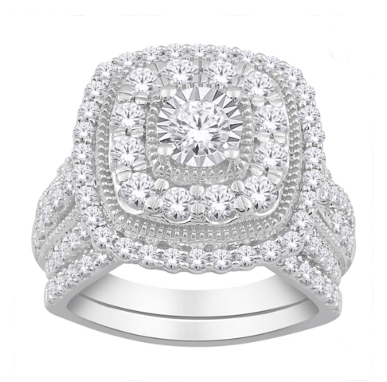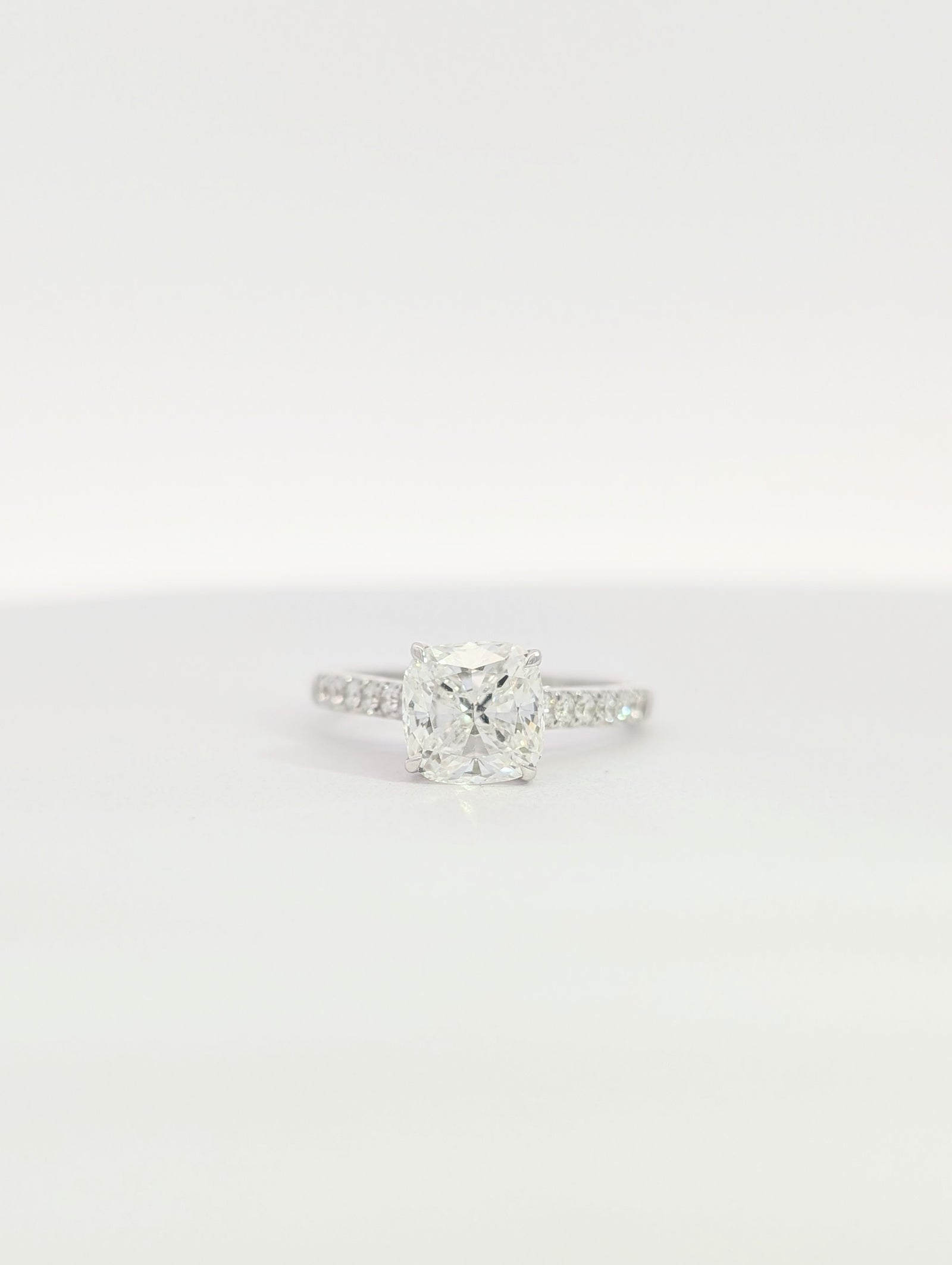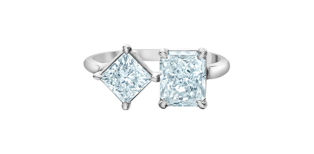 Anillo de diamantes de talla princesa y talla radiante cultivados en laboratorio de oro de 14 quilates de 2,50 quilates