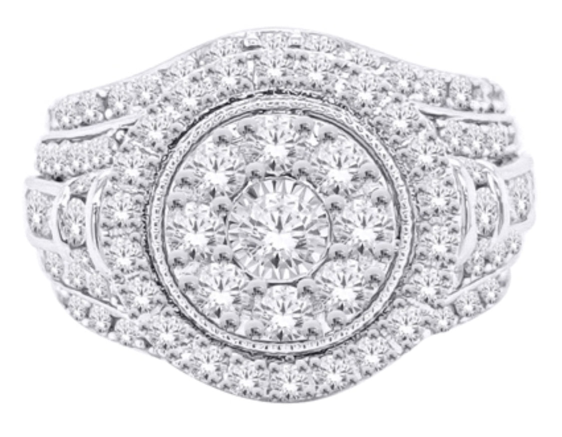 Anillo de diamantes de talla pera, talla brillante redonda y talla princesa cultivados en laboratorio de oro de 14 quilates de 3,0 quilates