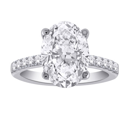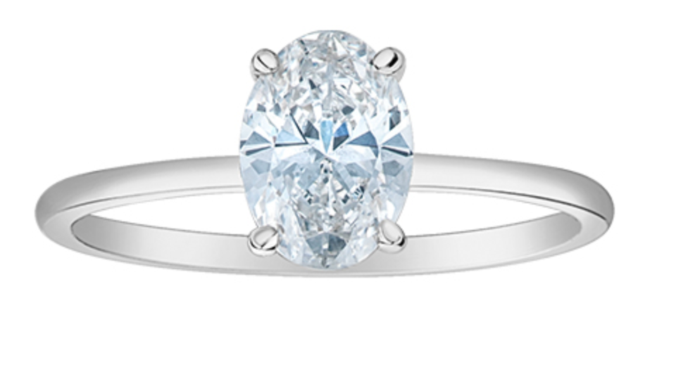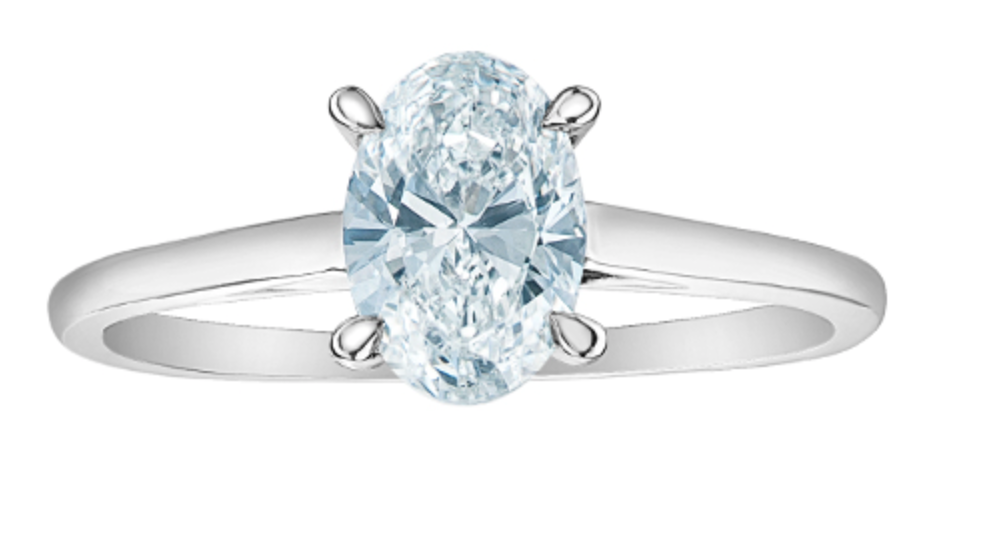 Anillo de diamantes de cuatro garras con forma ovalada de 1,00 a 2,00 quilates cultivado en laboratorio de 14 quilates