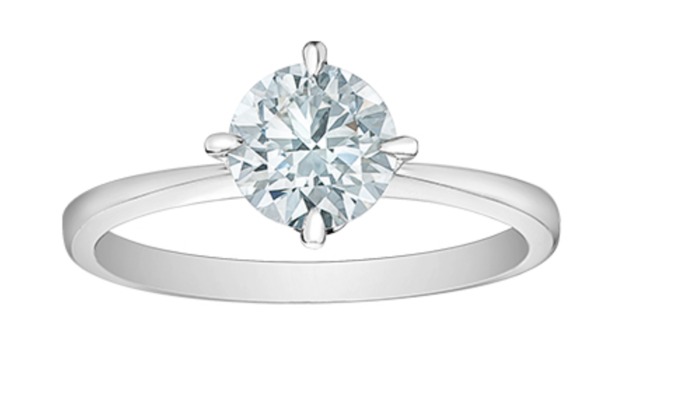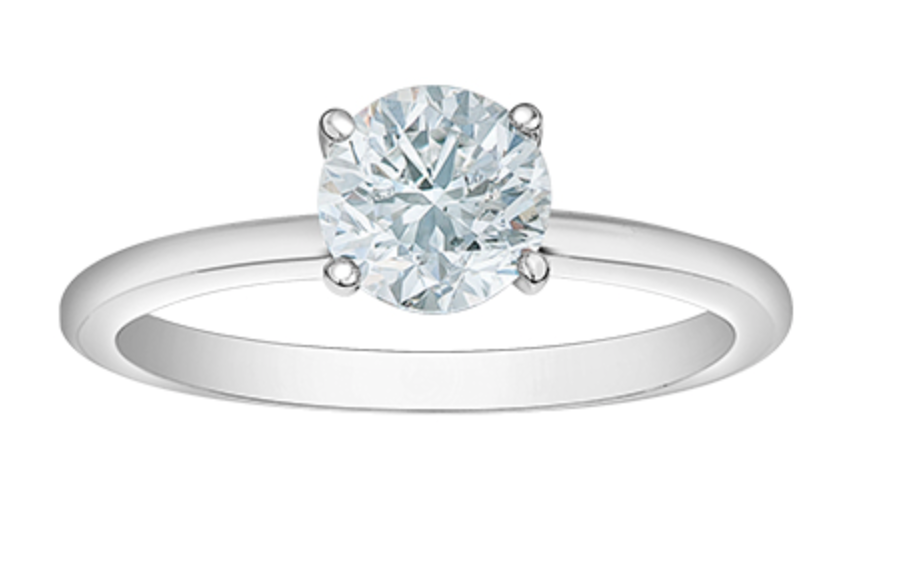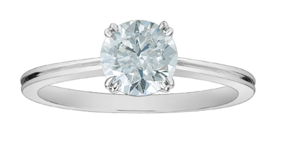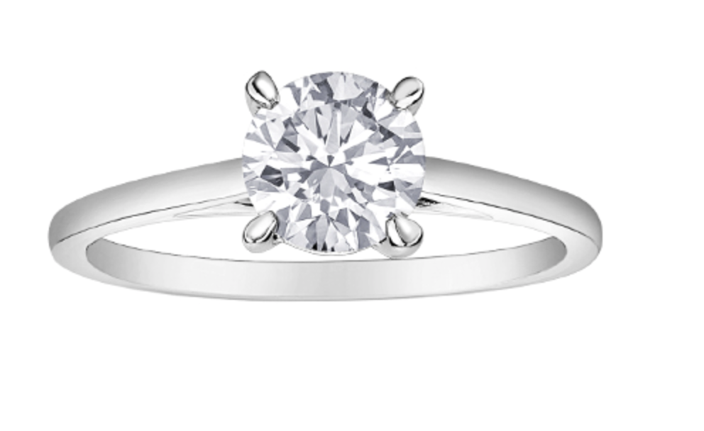 Anillo de diamantes de talla brillante redonda de 1,00 quilates cultivado en laboratorio de 14 quilates con 4 garras