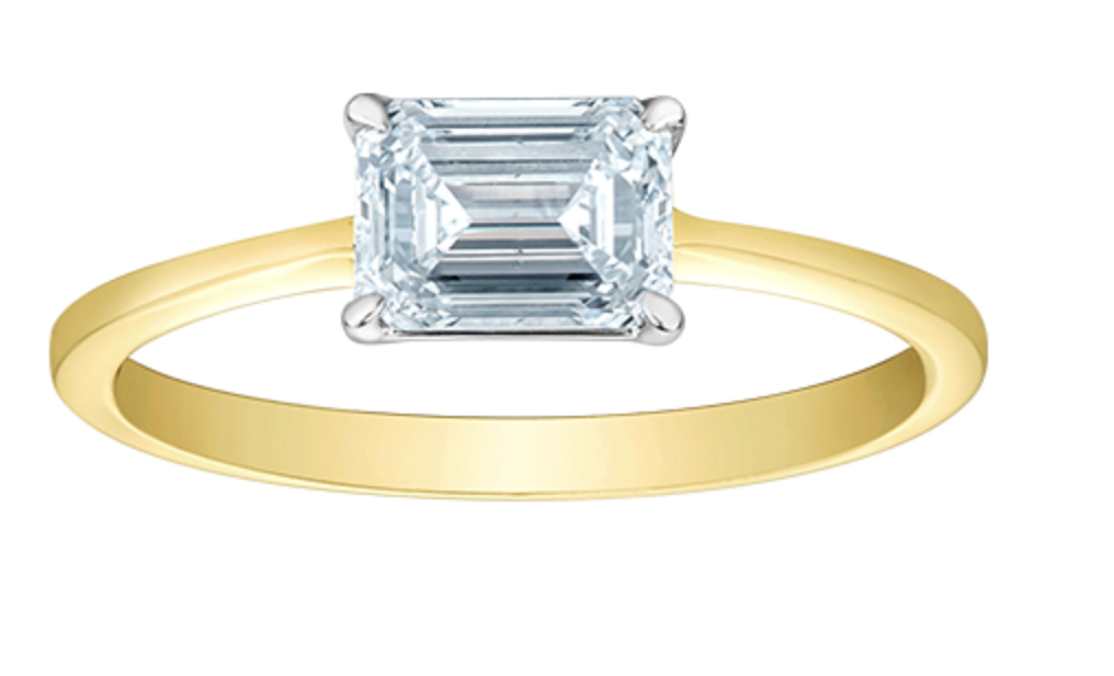 Anillo de diamantes de cuatro garras con talla esmeralda de 1,00 quilates cultivado en laboratorio de 14 quilates