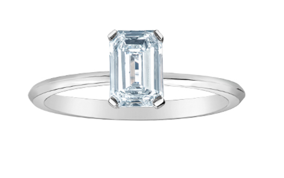 Anillo de diamantes con 4 garras de talla esmeralda de 0,50-1,00 quilates cultivados en laboratorio de 14 quilates