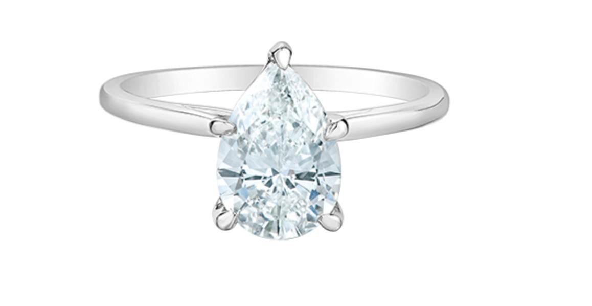 Anillo de diamantes de talla pera y talla ovalada cultivados en laboratorio de oro de 14 quilates de 2,00 quilates