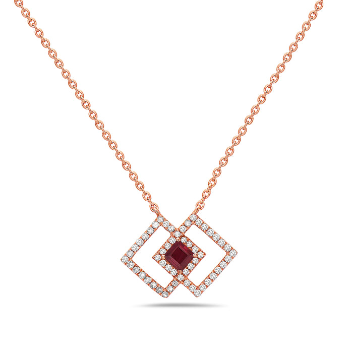 Collar de diamantes y rubíes en oro rosa de 14 quilates, 18 "