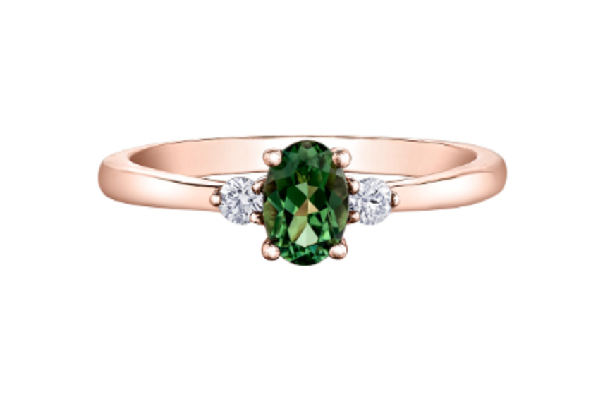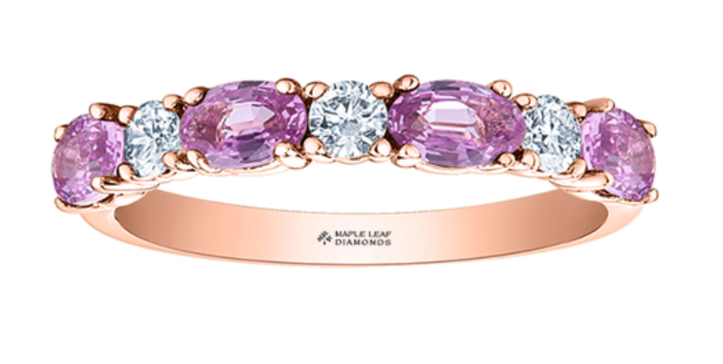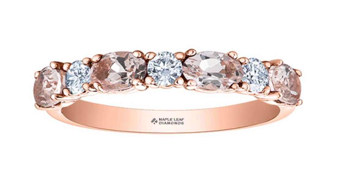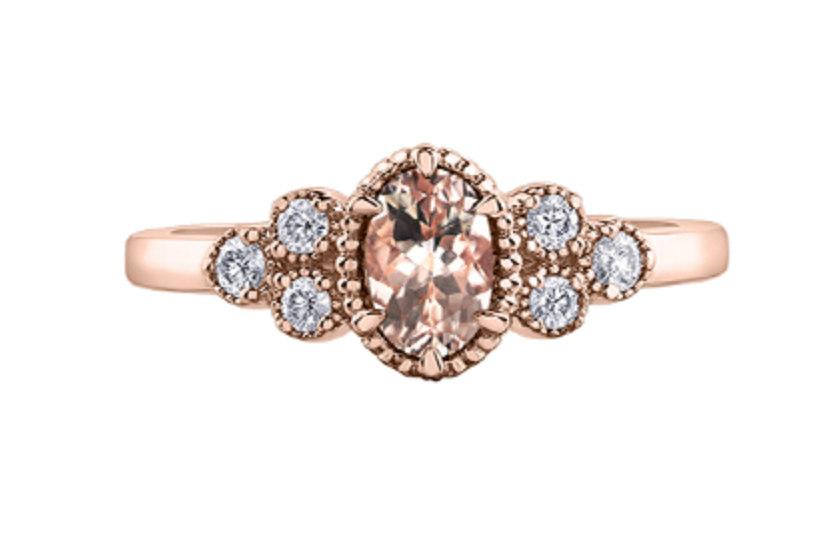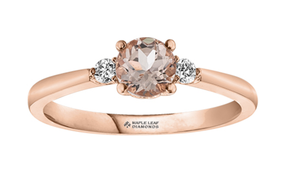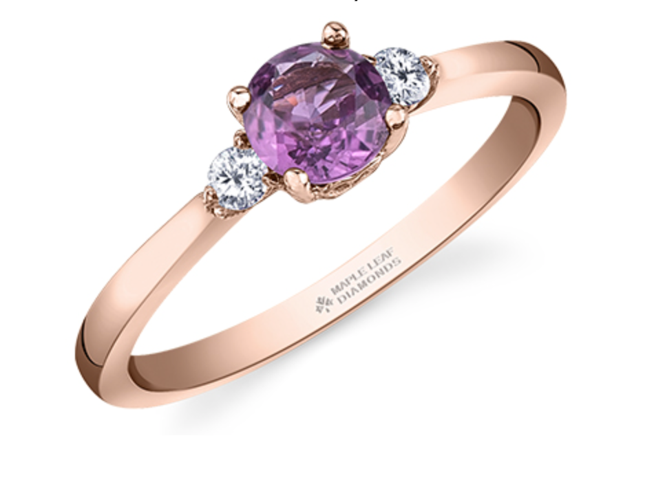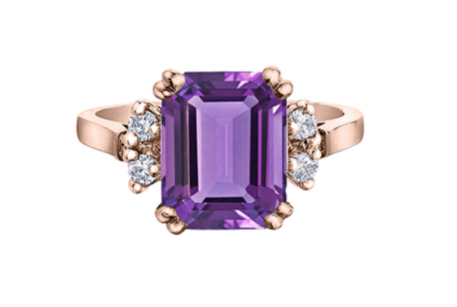 Anillo de oro rosa de 14 quilates con amatista y diamantes canadienses, talla 6