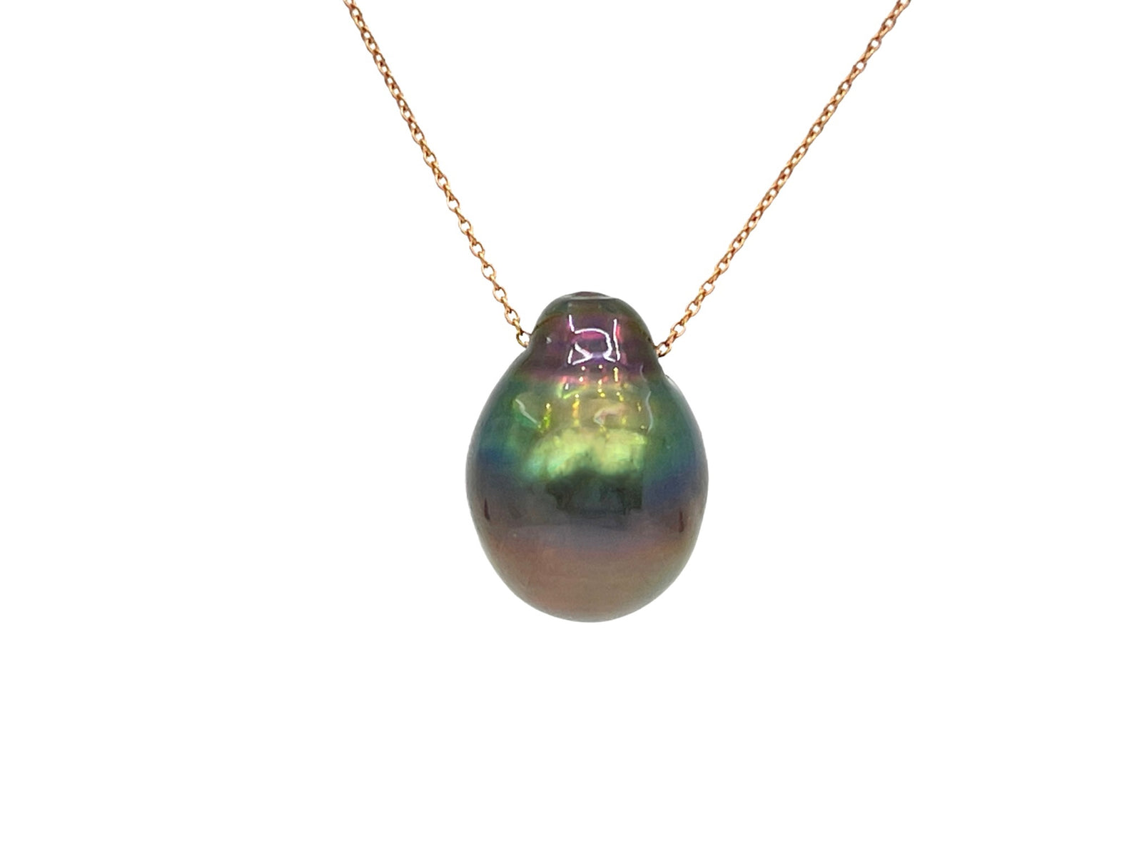 Collar de perlas de Tahití auténticas de oro rosa de 14 quilates, 18"