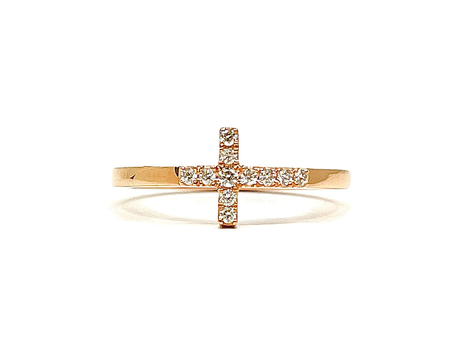 Anillo de diamantes de 0,17 quilates con cruz en oro rosa de 14 quilates, tamaño 6,5