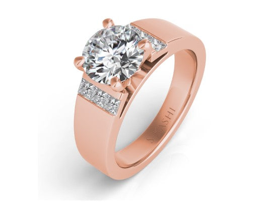 Anillo de diamantes redondos de talla brillante de 14 quilates