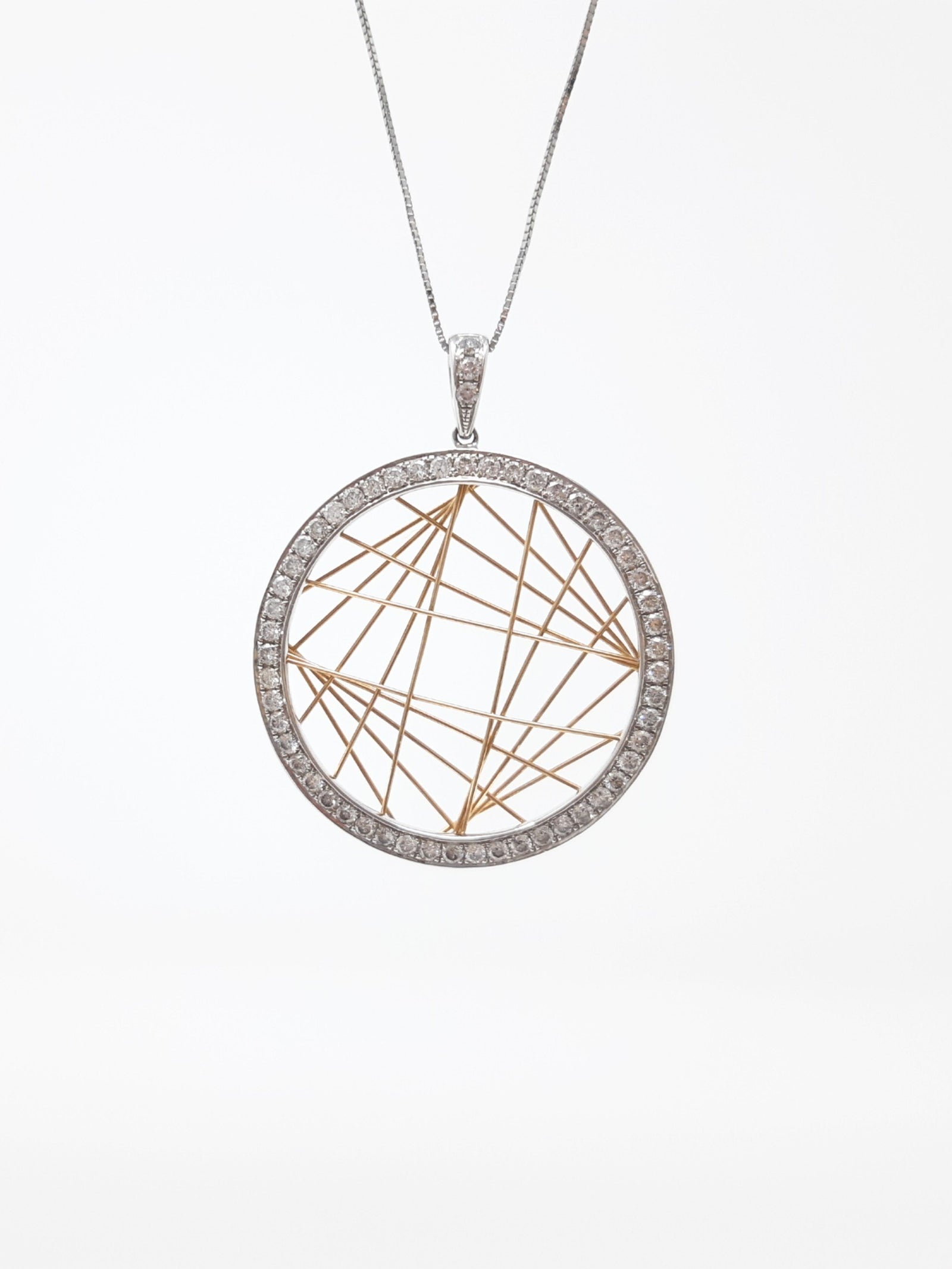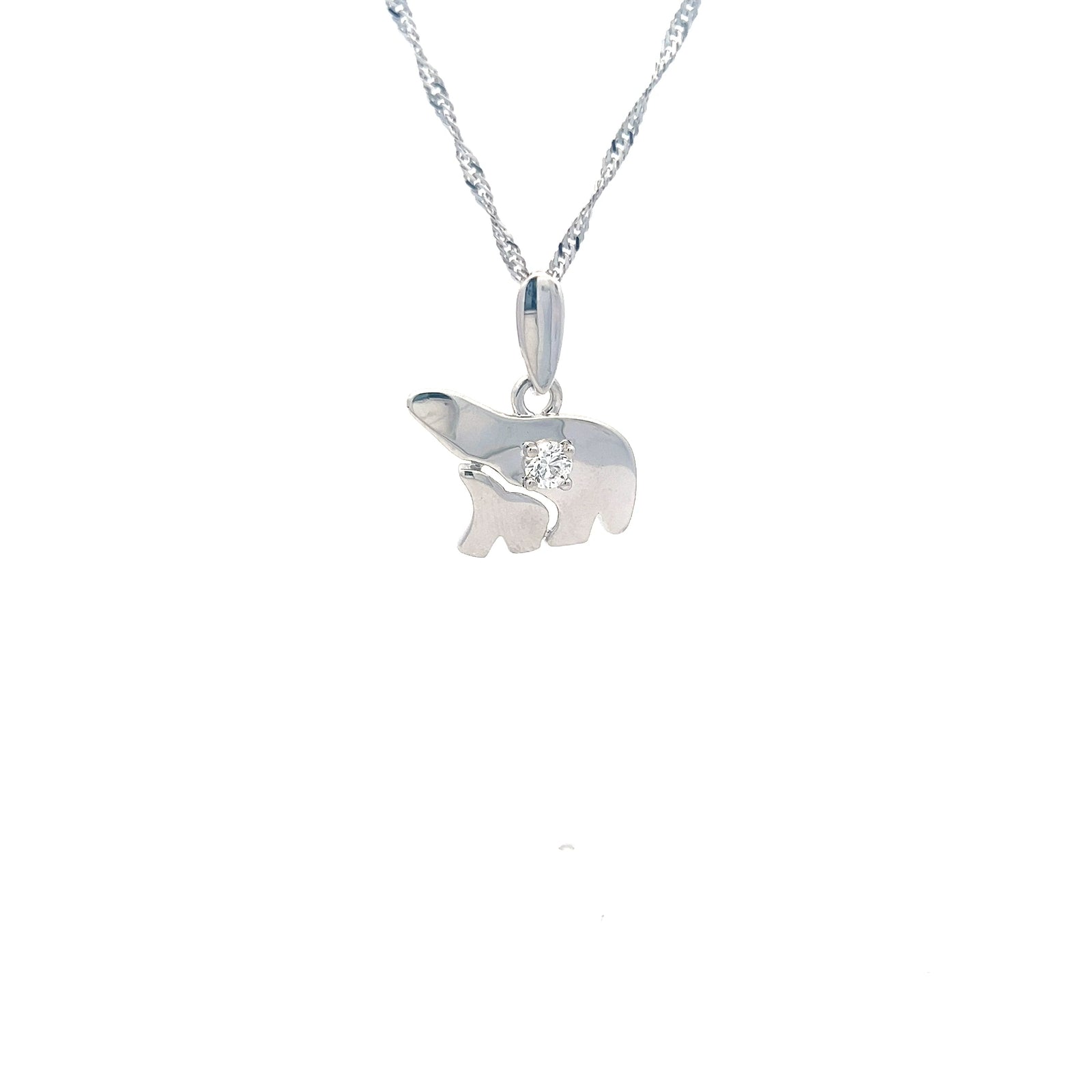 Collar de madre y cachorro de oro blanco de 14 quilates con diamantes de 0,27 quilates y cadena Singapur (cierre de resorte), ajustable de 16 y 18 pulgadas