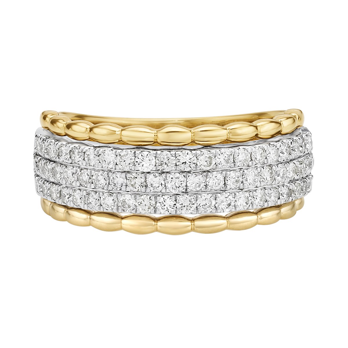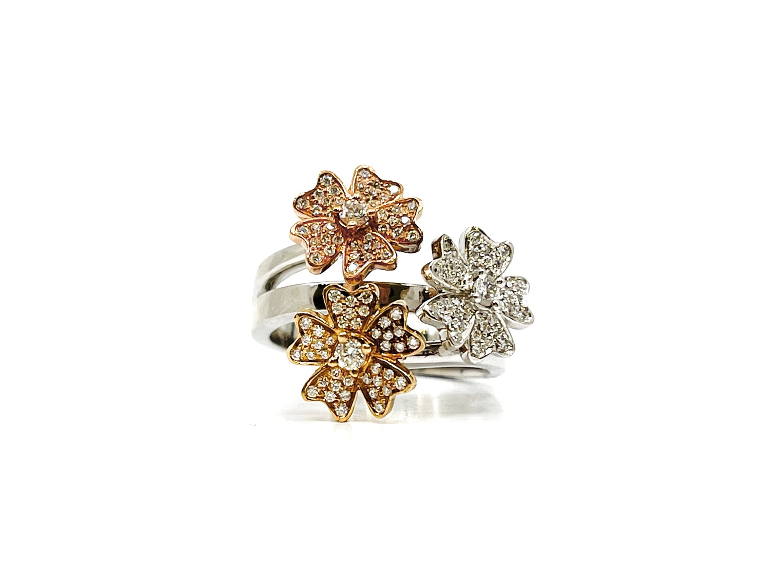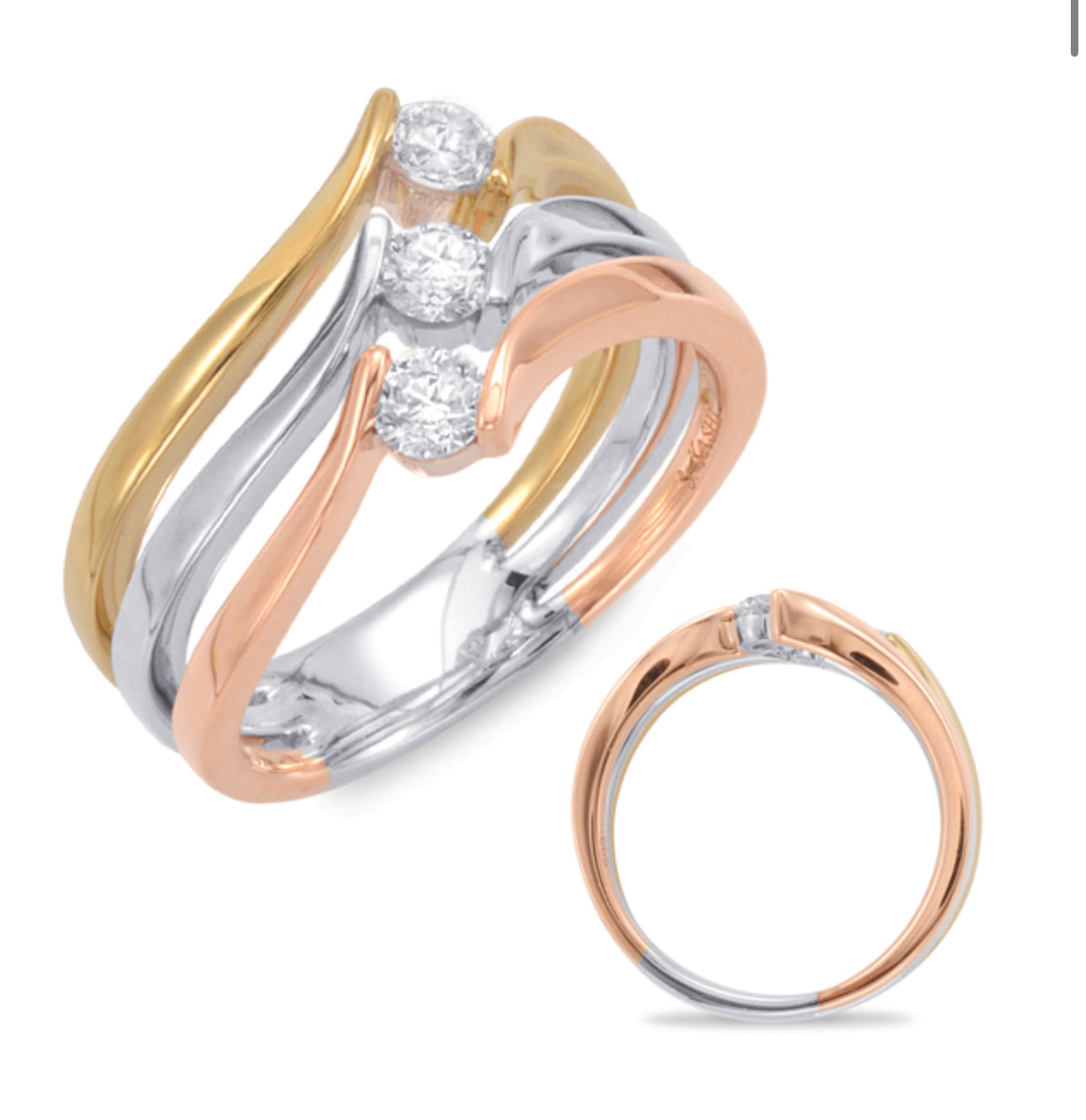 Anillo superpuesto de diamantes de 0,37 quilates de oro amarillo, blanco y rosa tricolor de 14 quilates - Tamaño 6,5