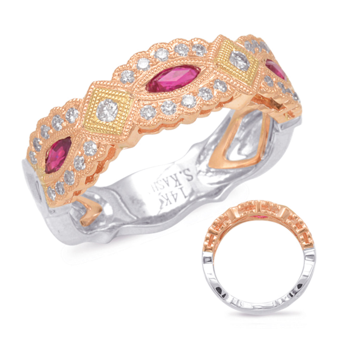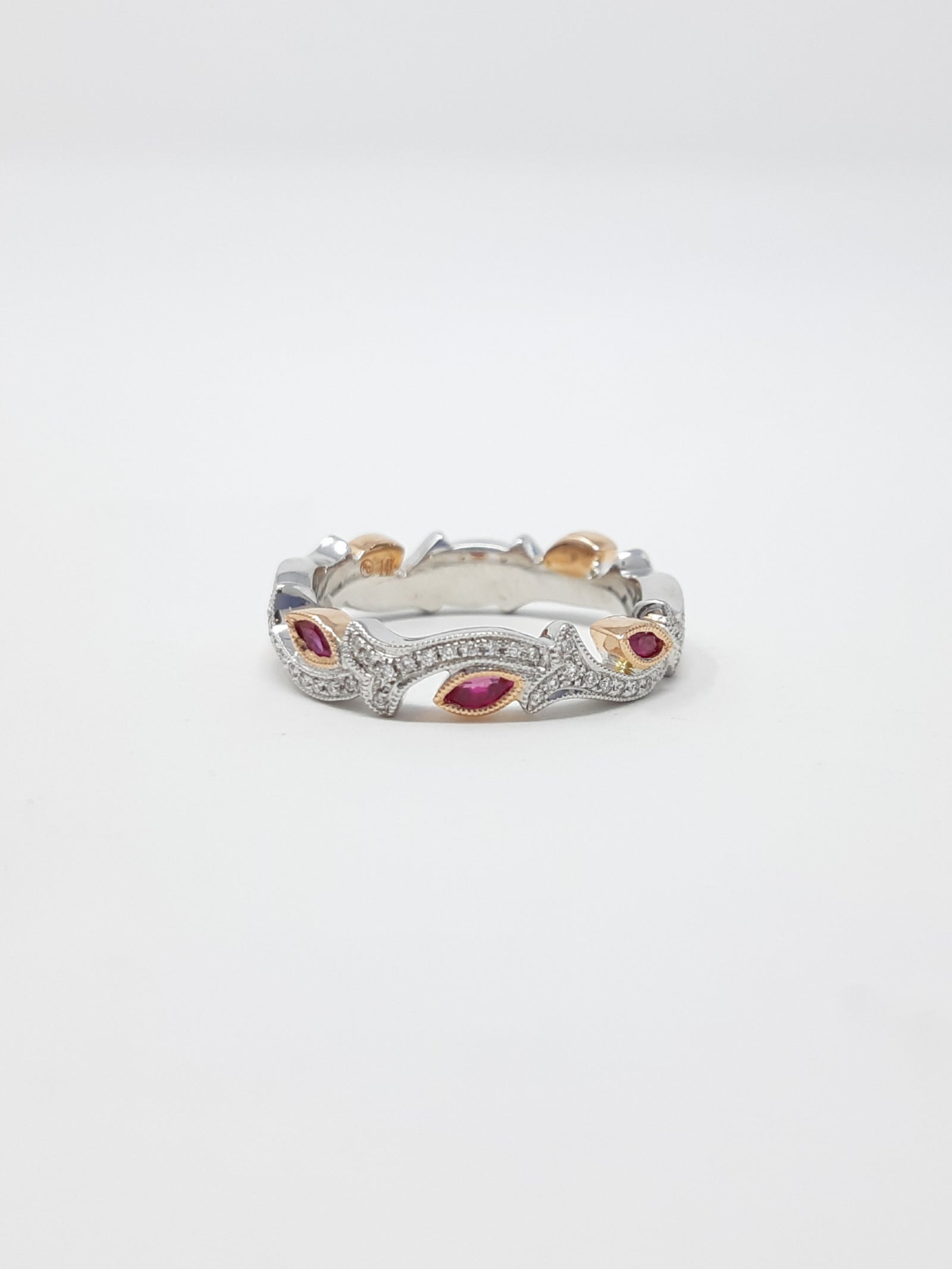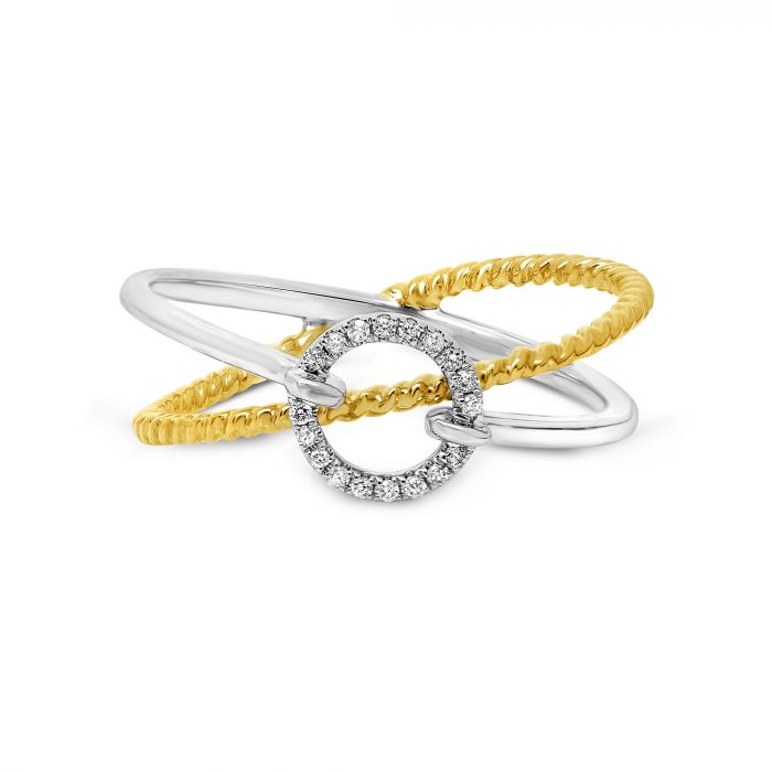 Anillo superpuesto de diamantes de 0,37 quilates de oro amarillo, blanco y rosa tricolor de 14 quilates - Tamaño 6,5