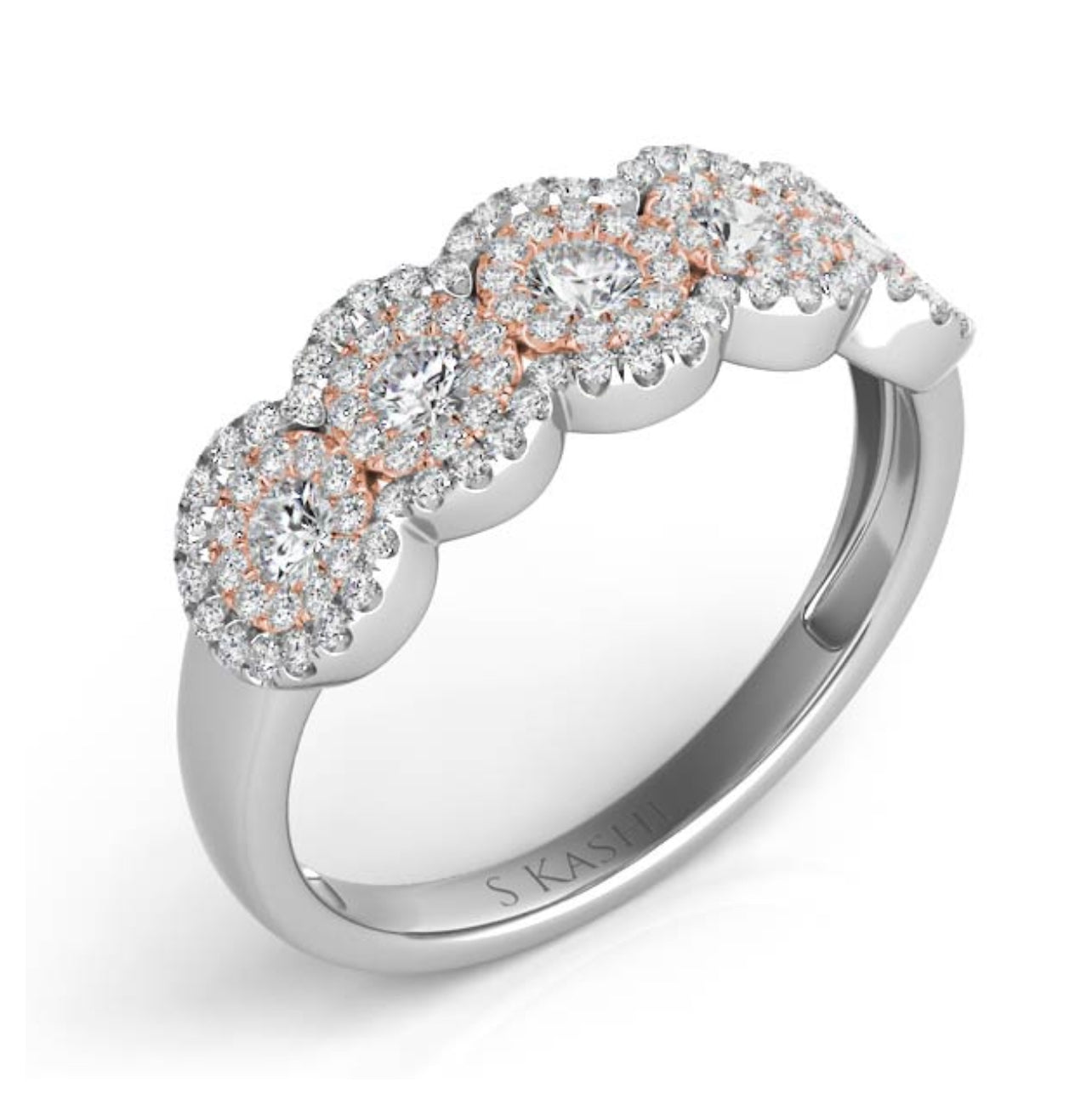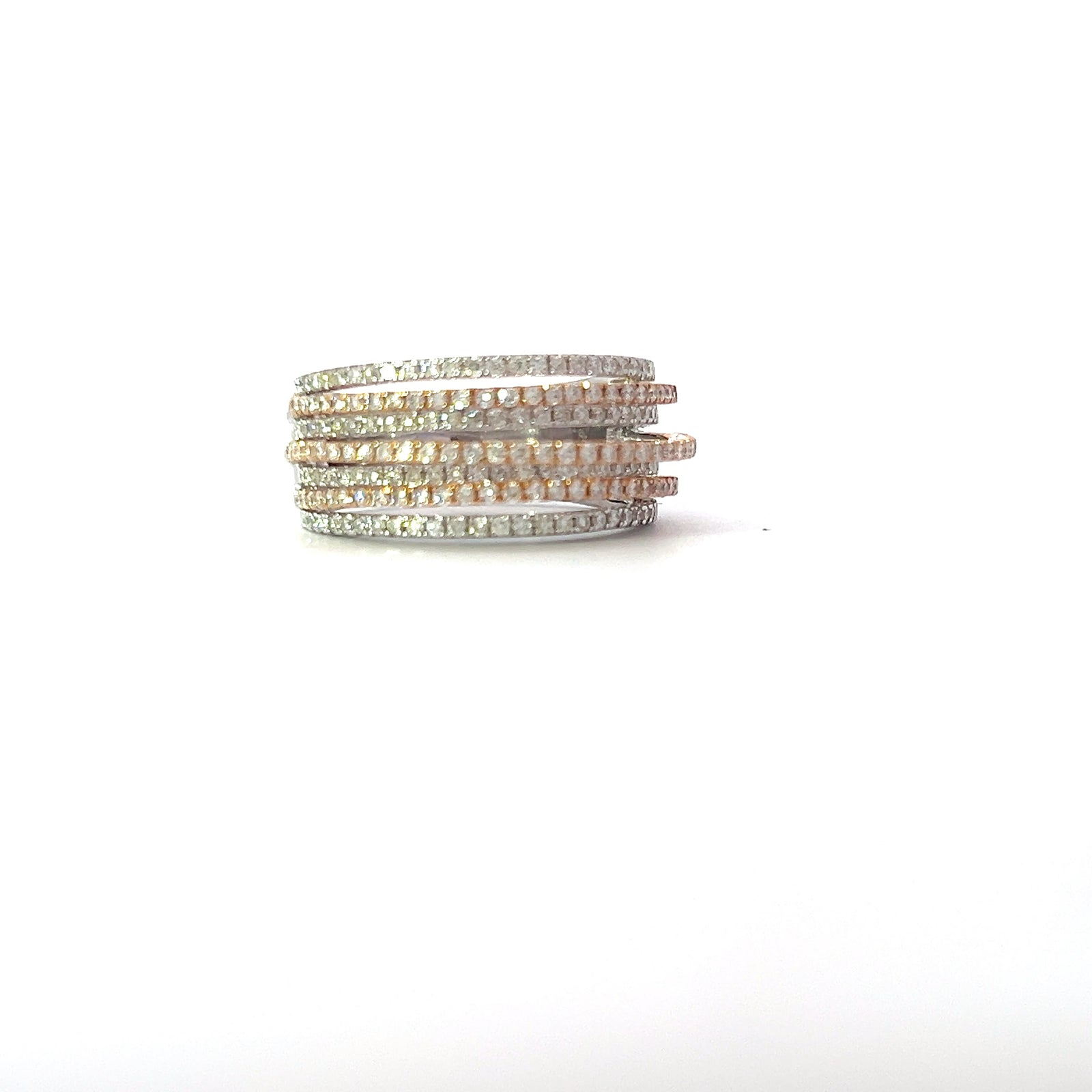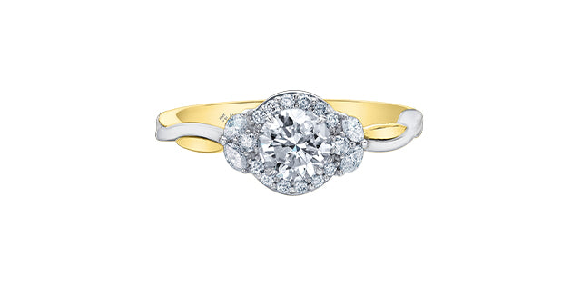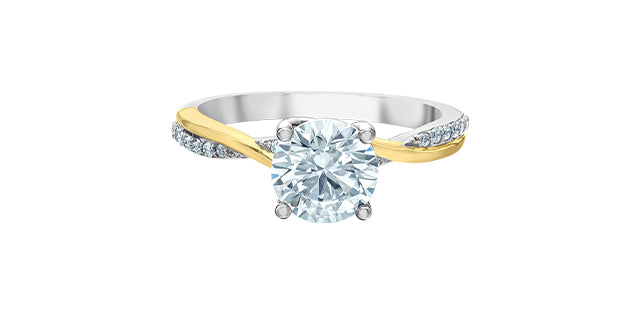 Anillo de diamantes redondos de talla brillante cultivados en laboratorio de 1,60 quilates de oro blanco y amarillo de 14 quilates