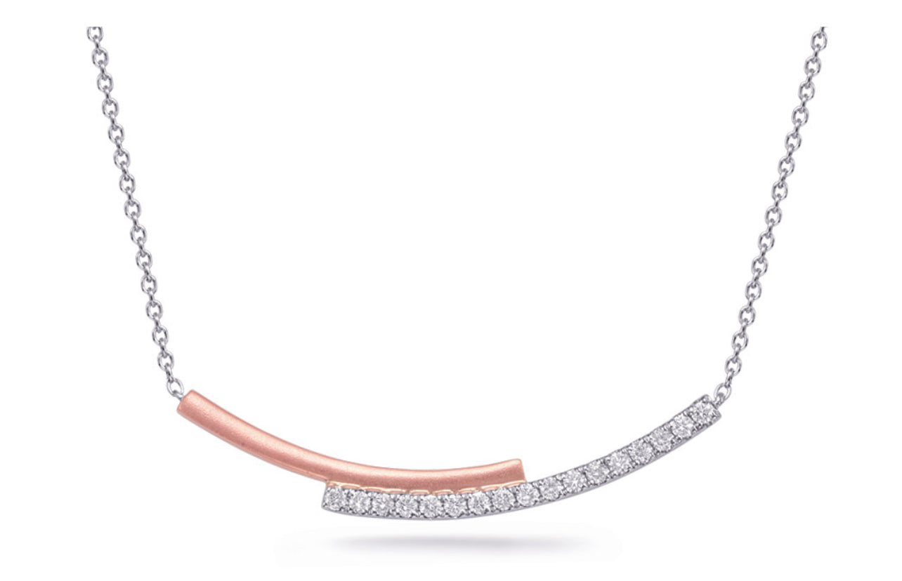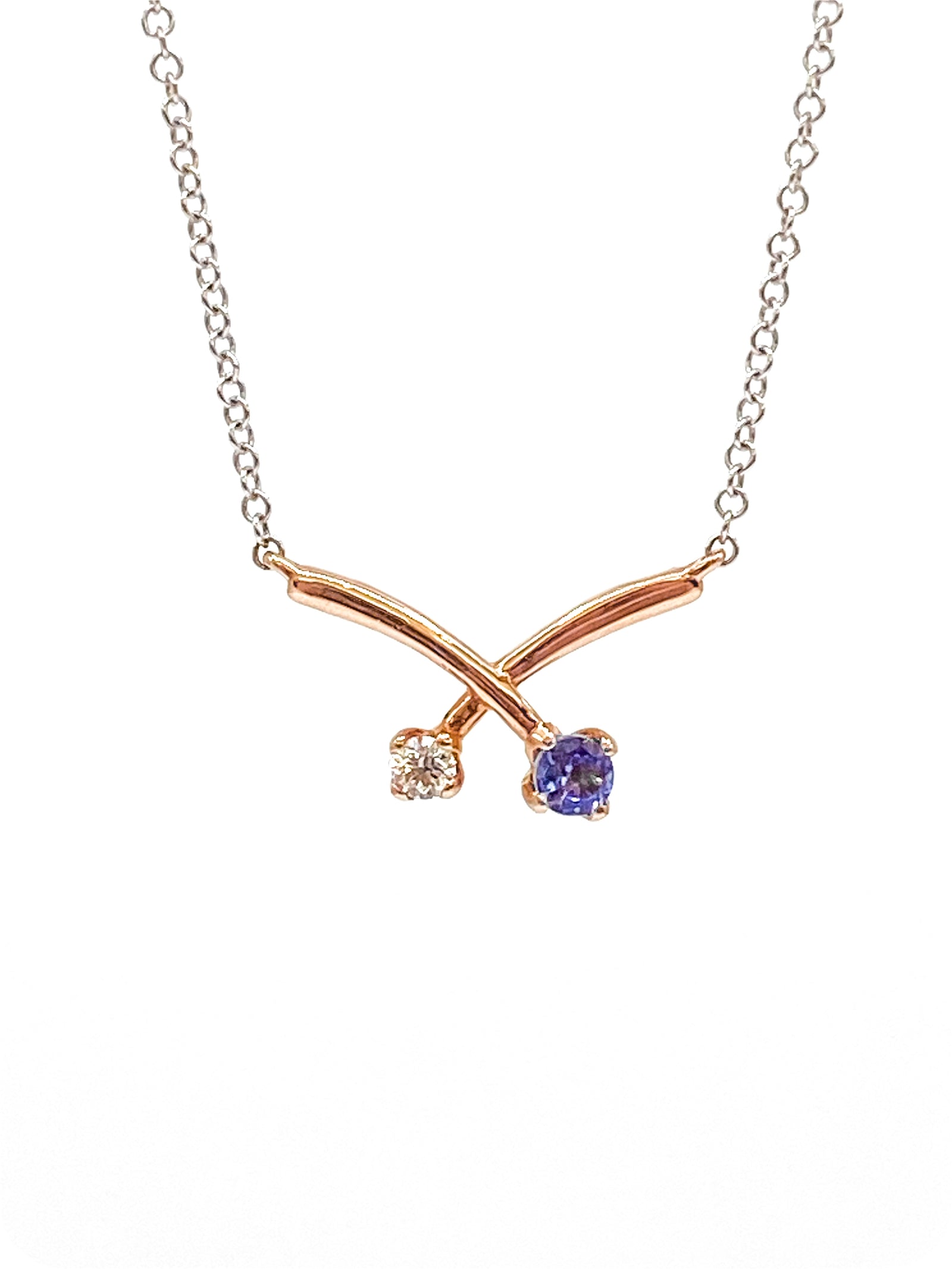 Colgante de oro blanco y rosa de 14 quilates con tanzanita genuina de 0,12 quilates y diamante de 0,05 quilates, 18"