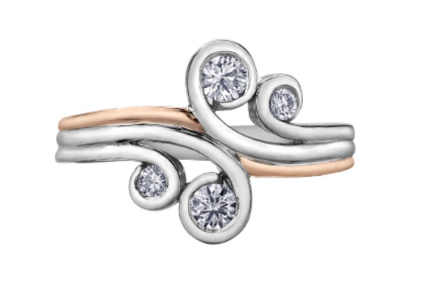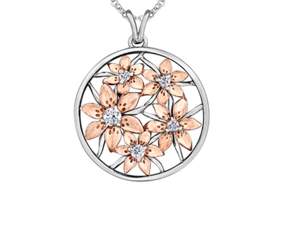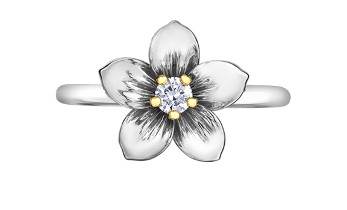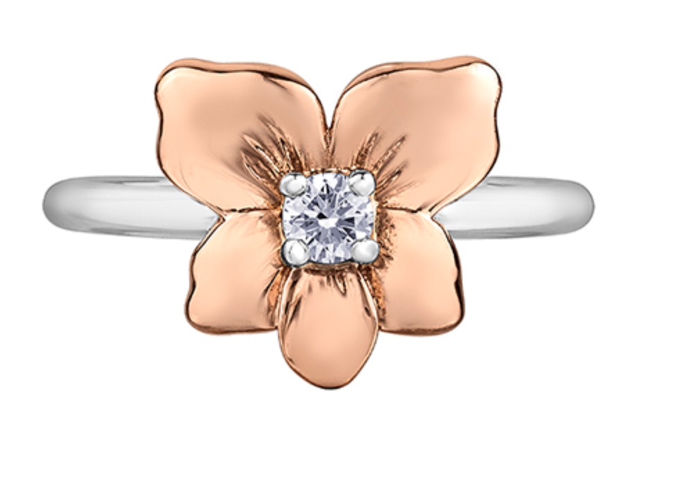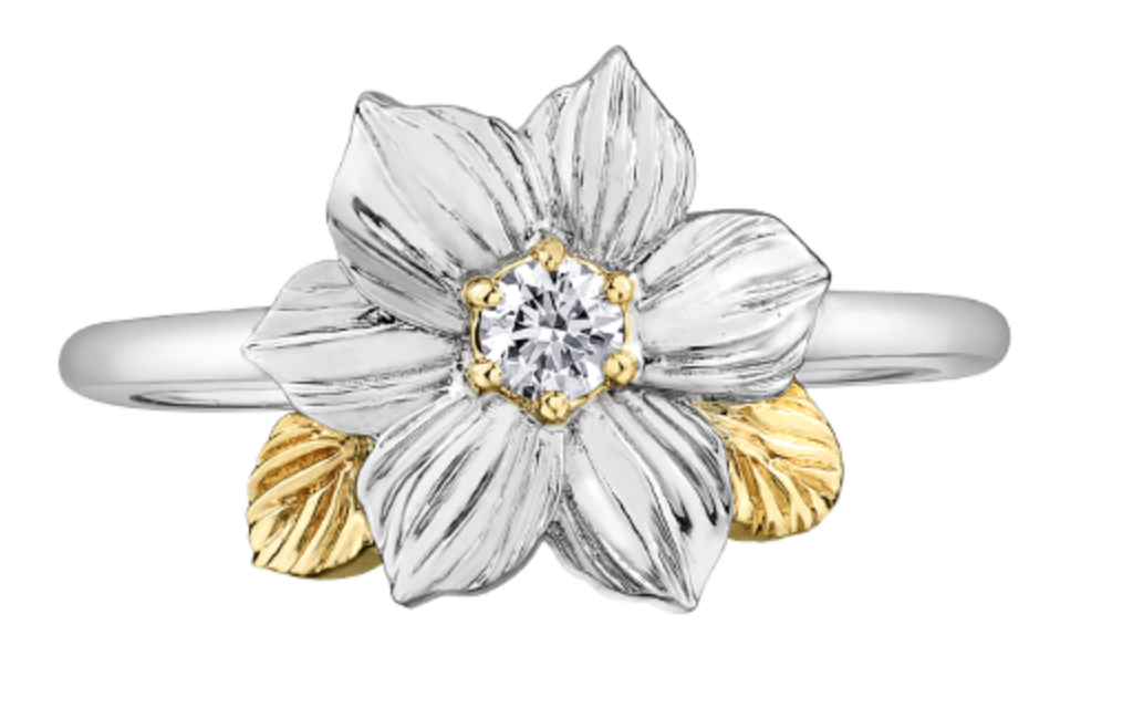 Anillo de diamantes con flor provincial de la Isla del Príncipe Eduardo de 0,10 quilates en oro blanco y rosa de 14 quilates, tamaño 6,5