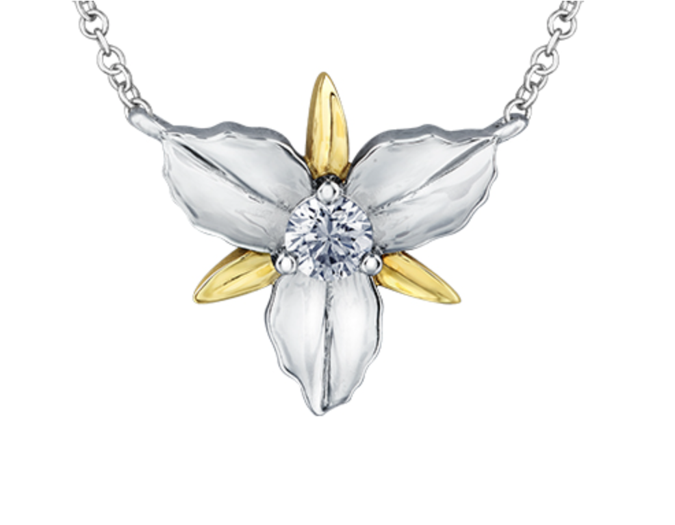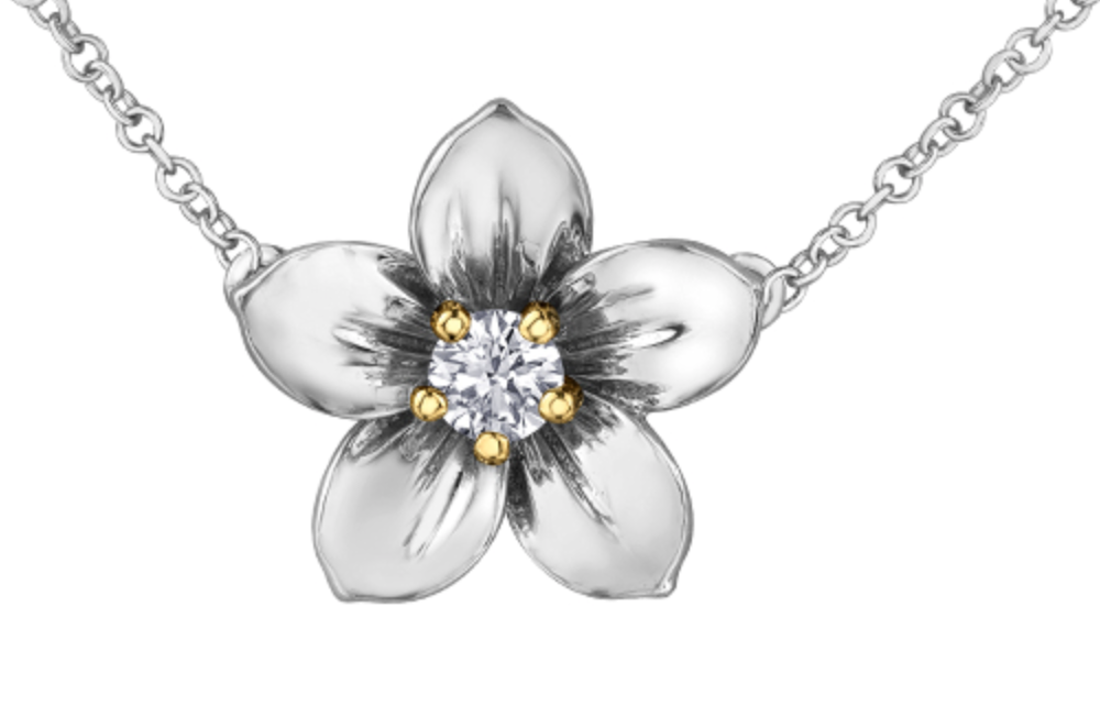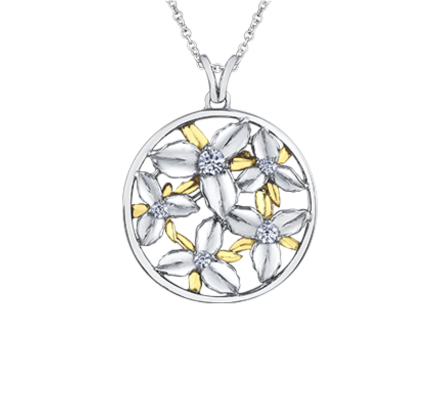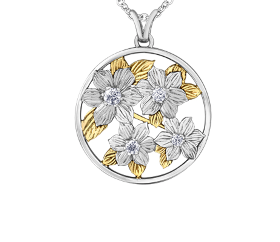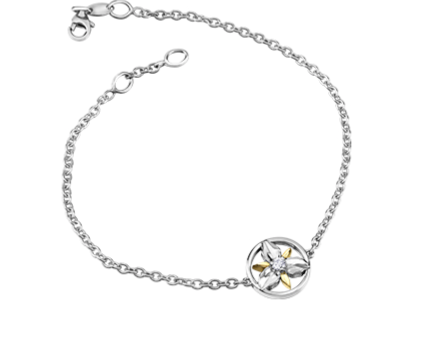 Pulsera de diamantes con flor provincial de azafrán de pradera de Manitoba de 0,04 quilates de oro blanco y amarillo de 14 quilates