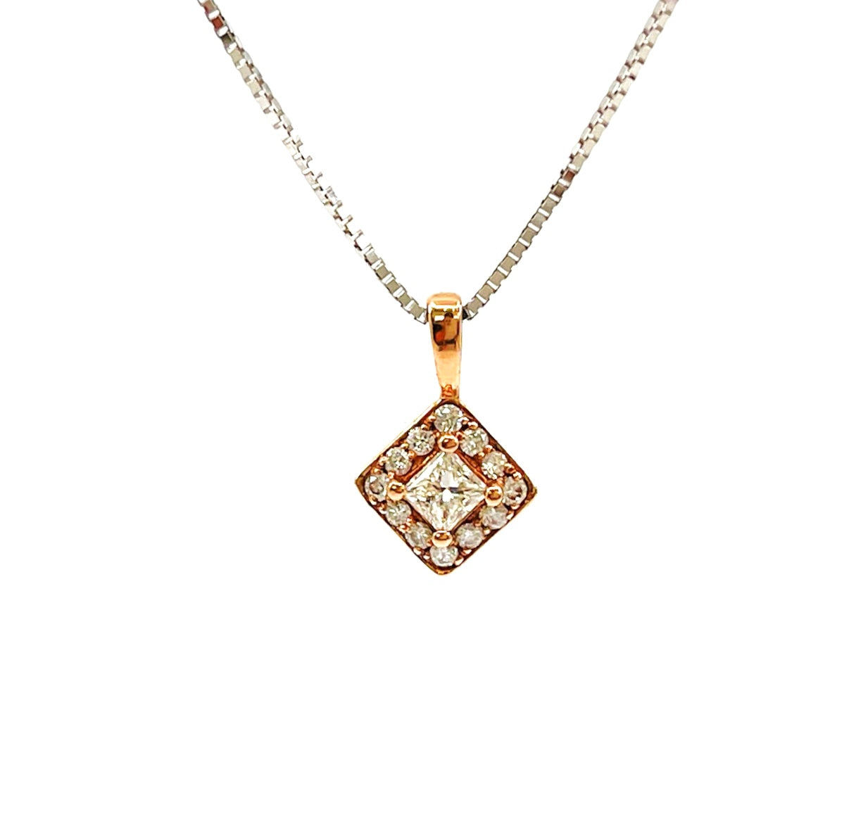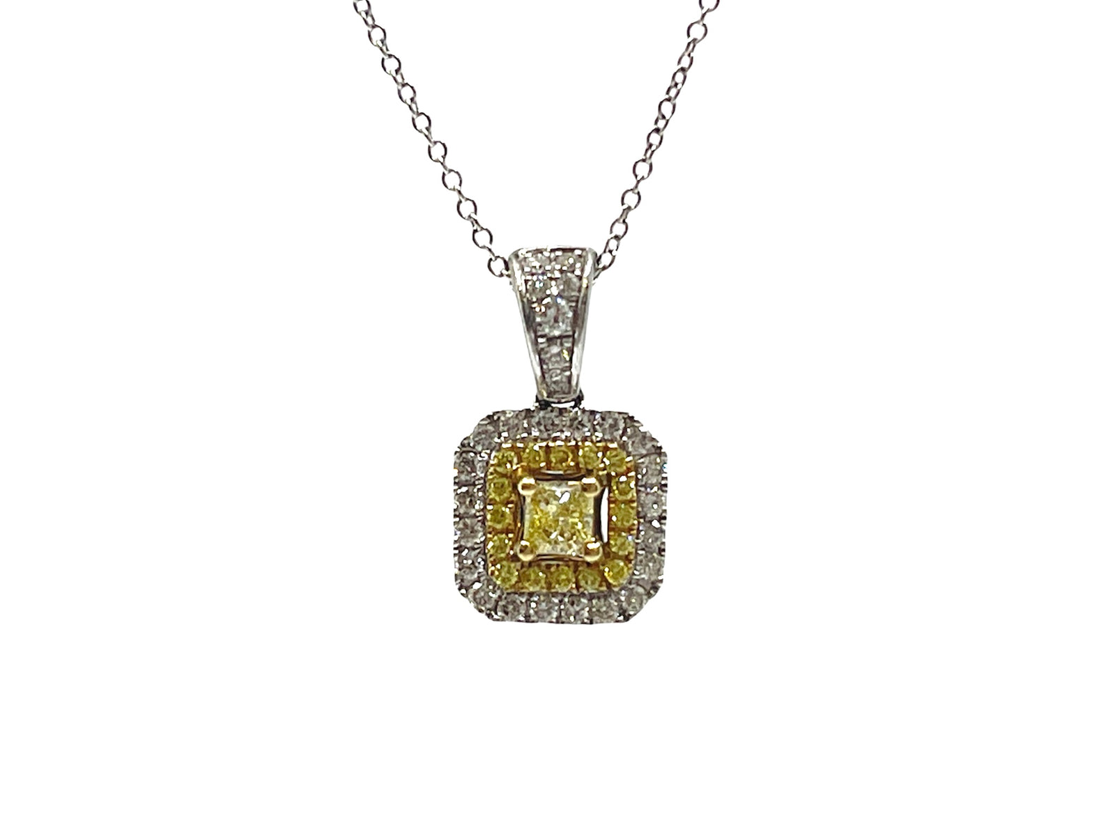 Collar de diamantes de talla radiante amarillo elegante de 0,83 quilates de oro blanco y amarillo de 14 quilates - 18 pulgadas