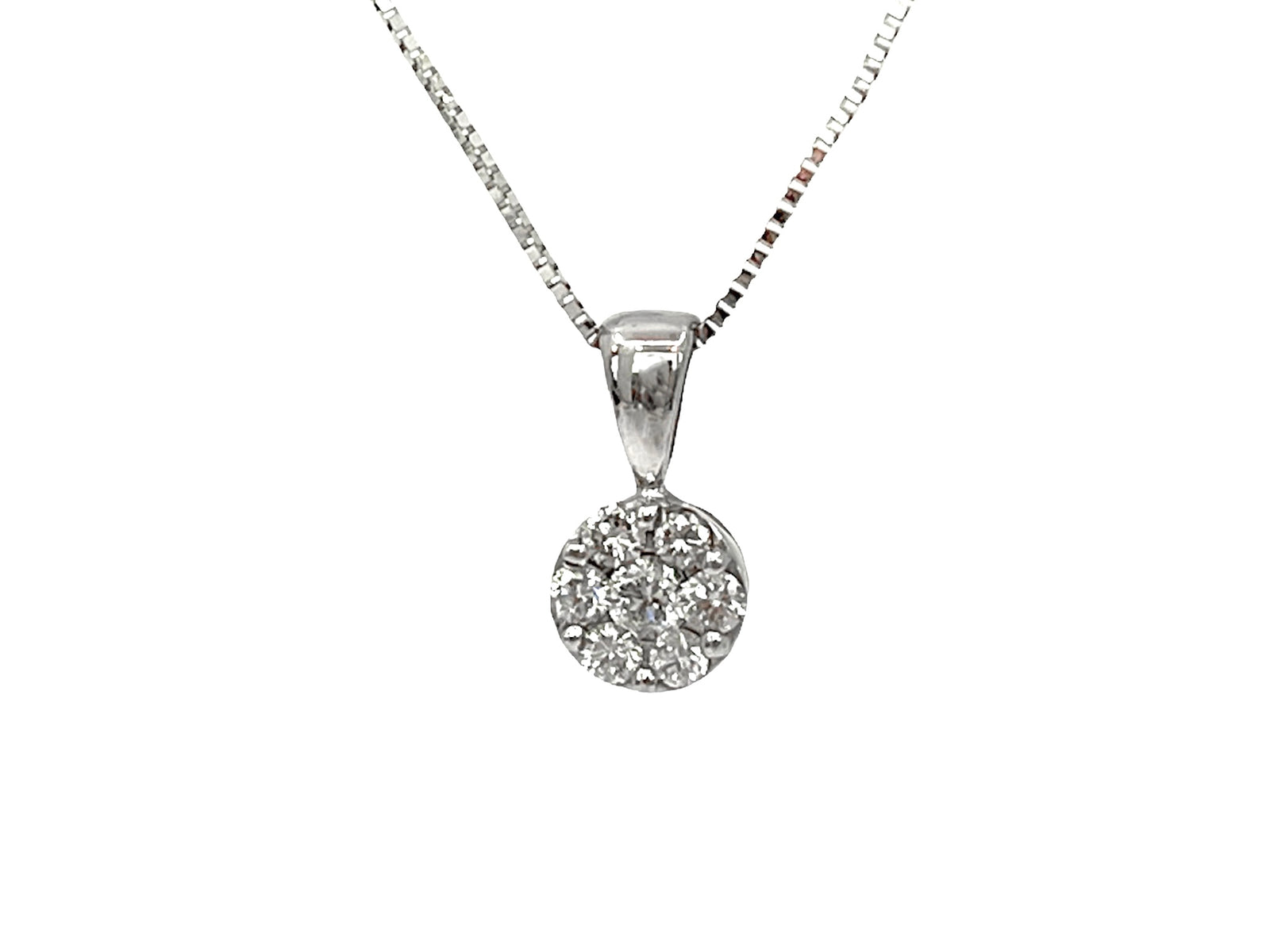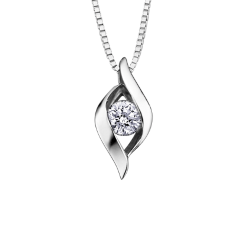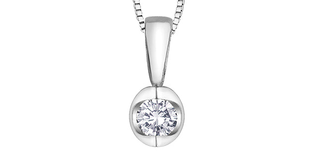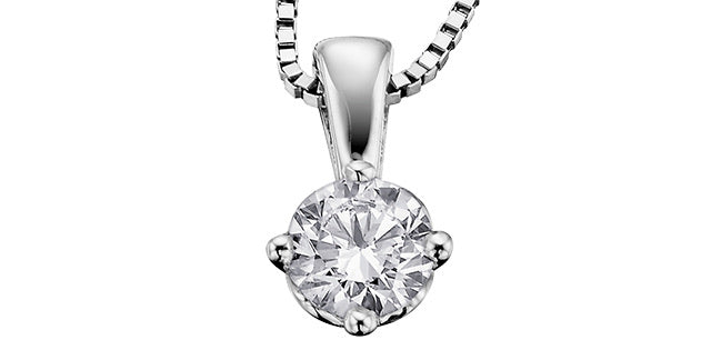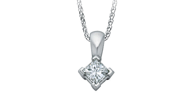 Colgante con solitario de diamante canadiense de talla princesa de 0,13 quilates en oro blanco de 14 quilates, 18"