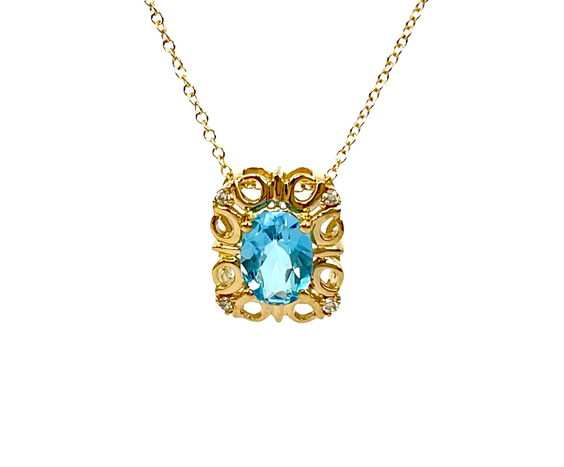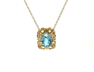 - Colgante de diamantes y topacio azul suizo de oro amarillo de 10 quilates