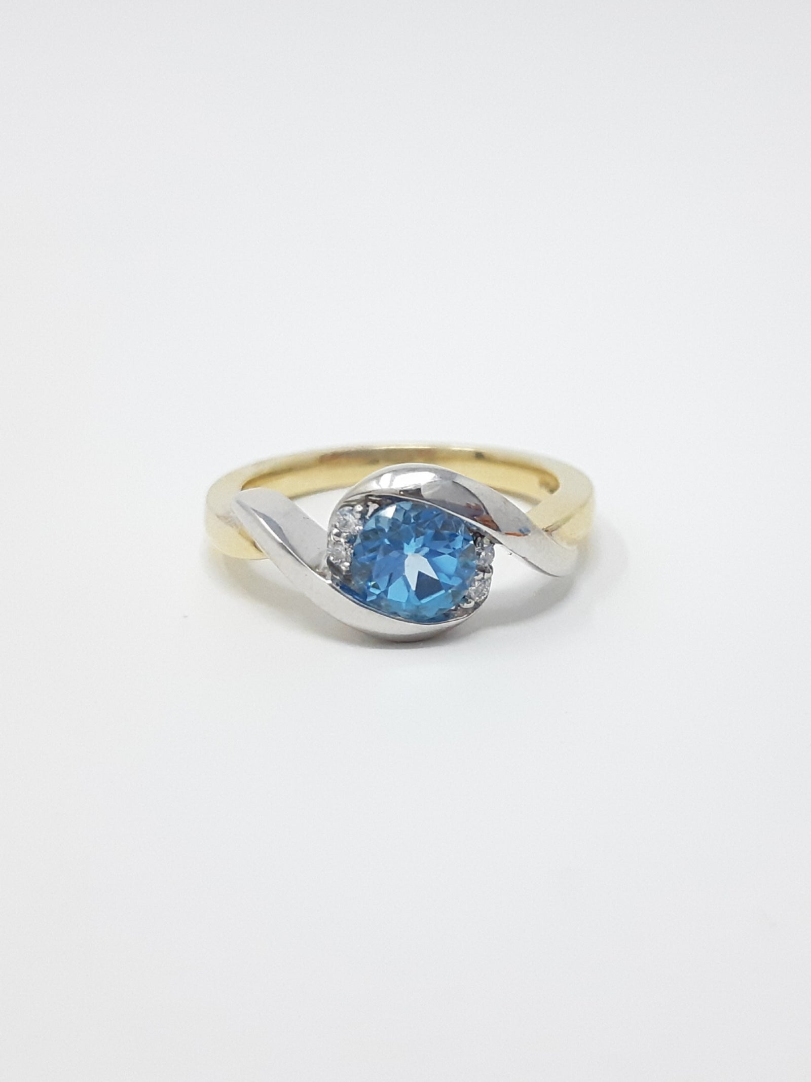 Anillo de topacio azul y diamantes
