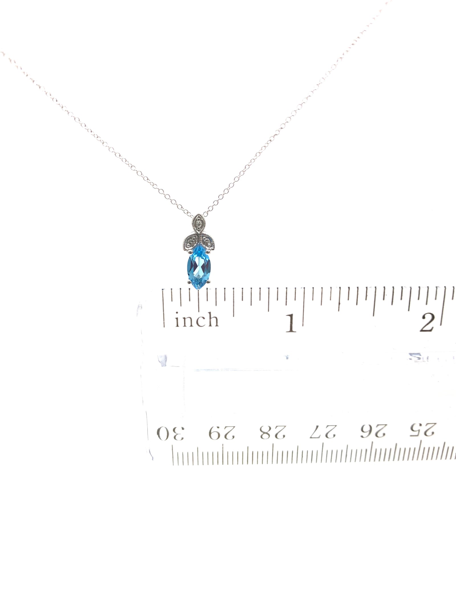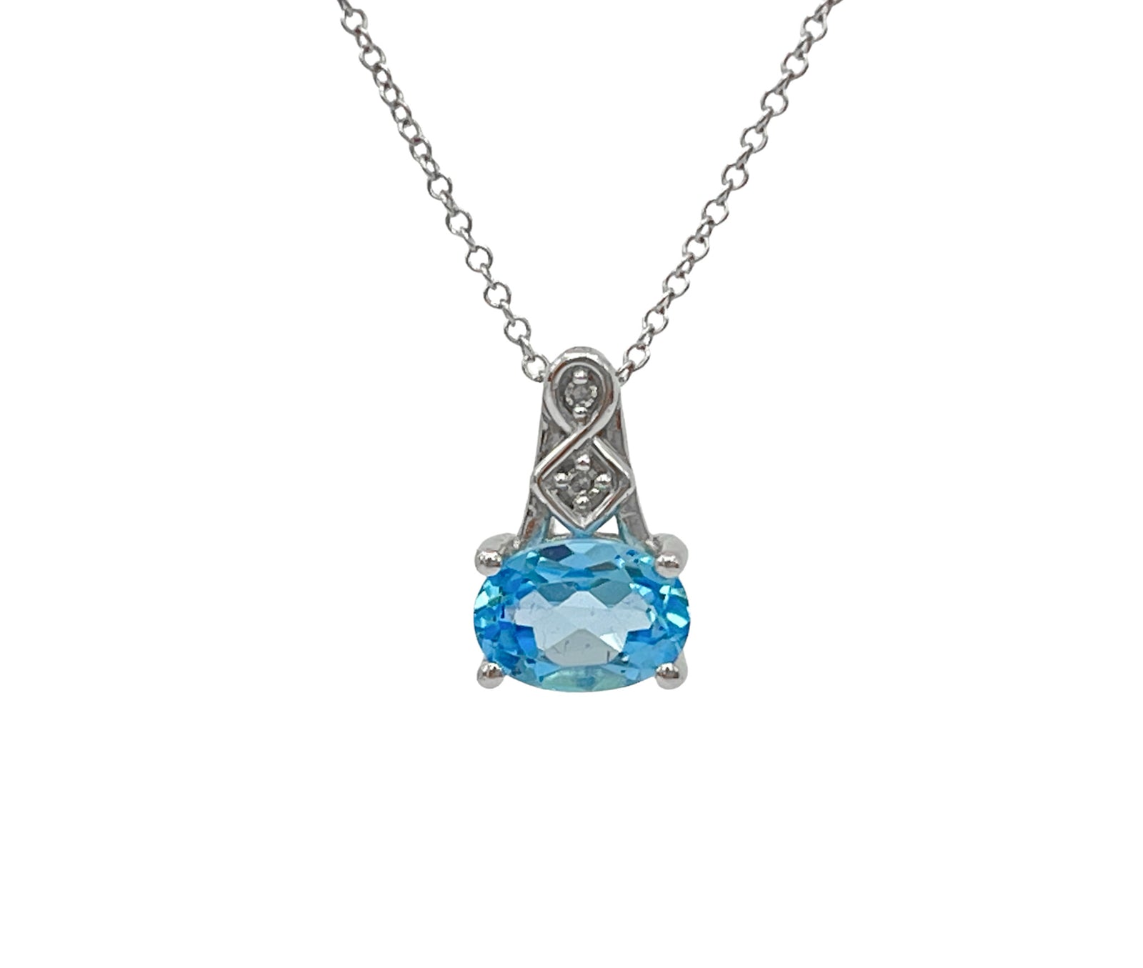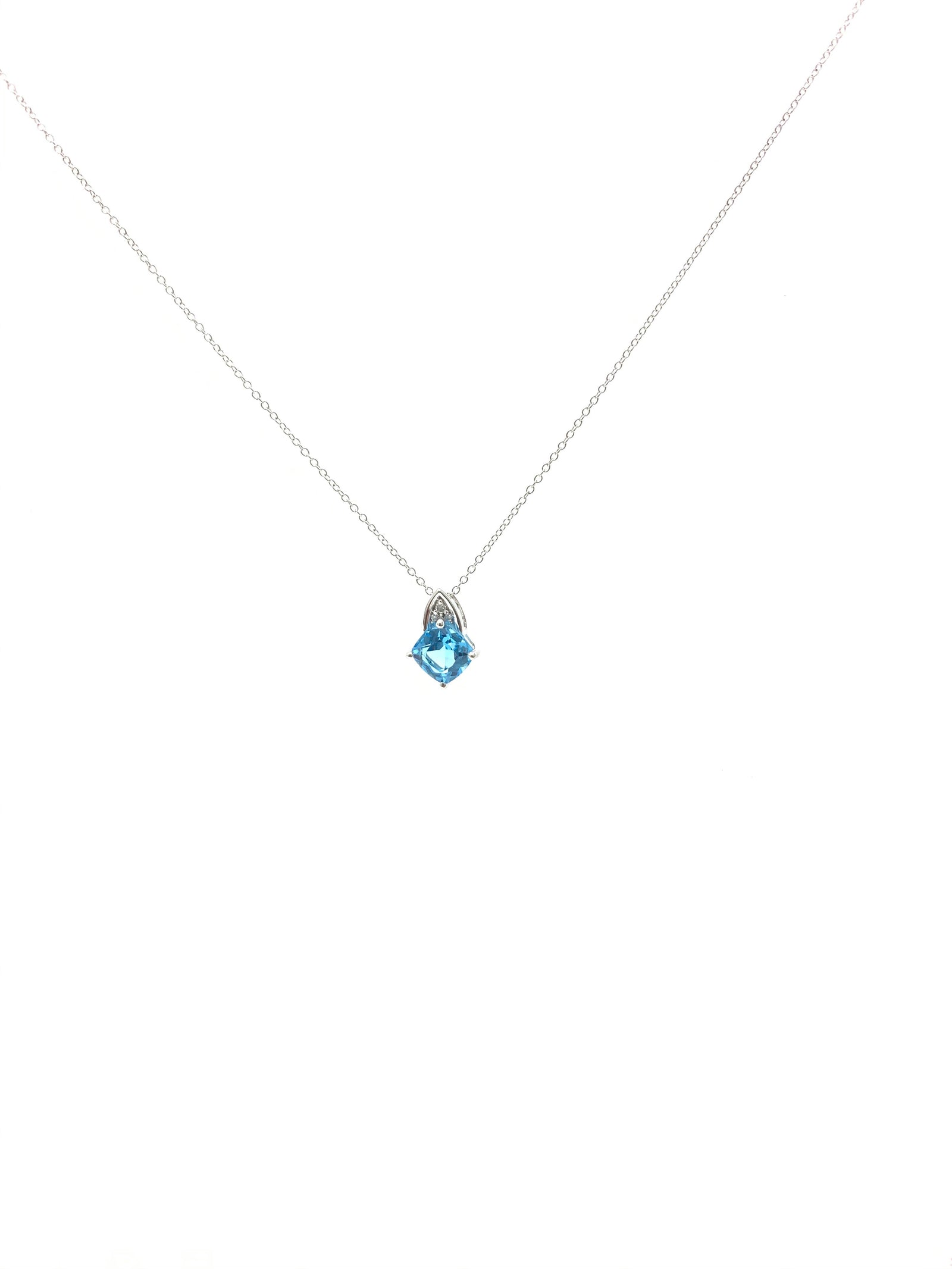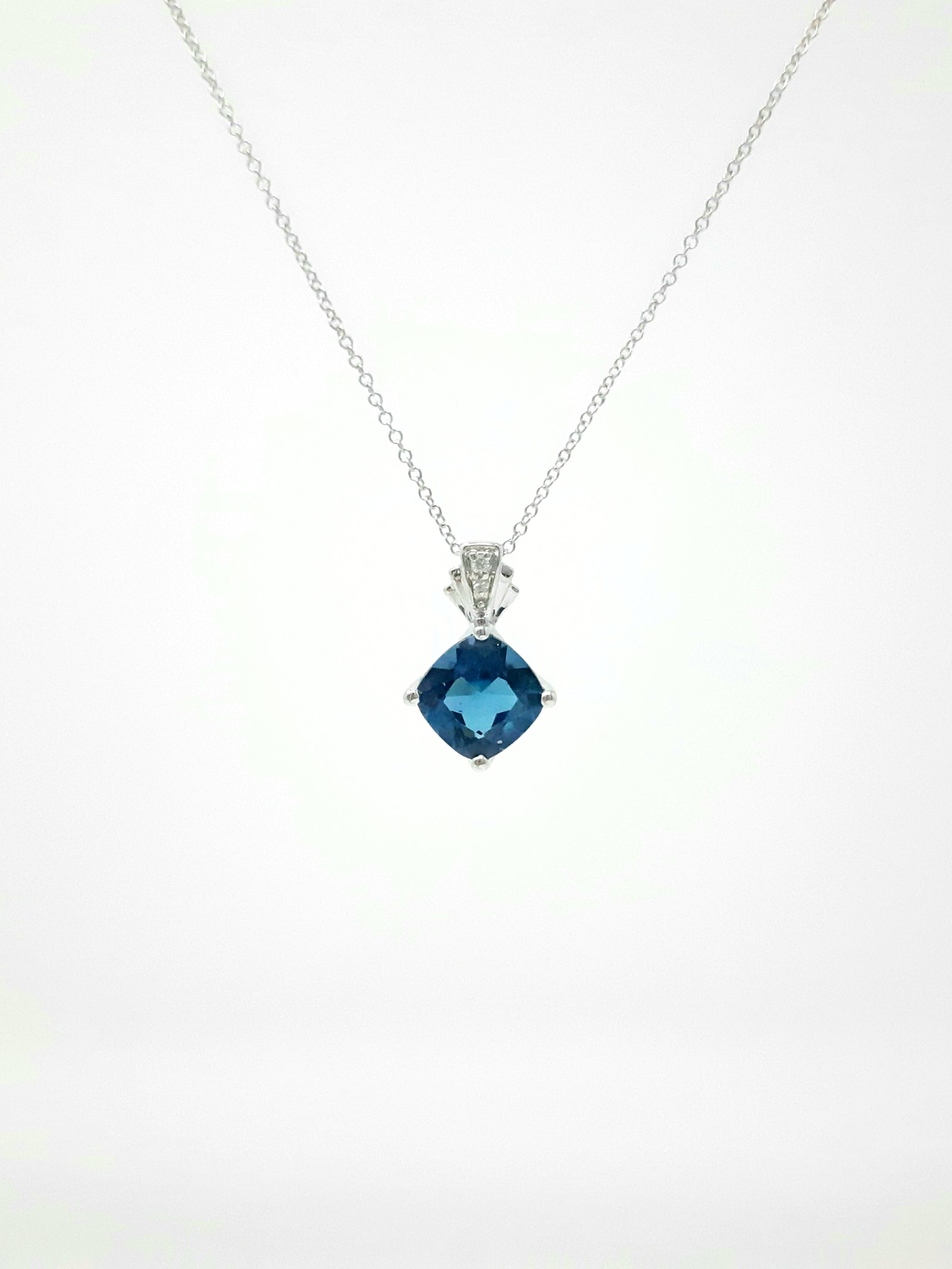 Colgante de diamantes y topacio azul en oro blanco de 10 quilates, 18"