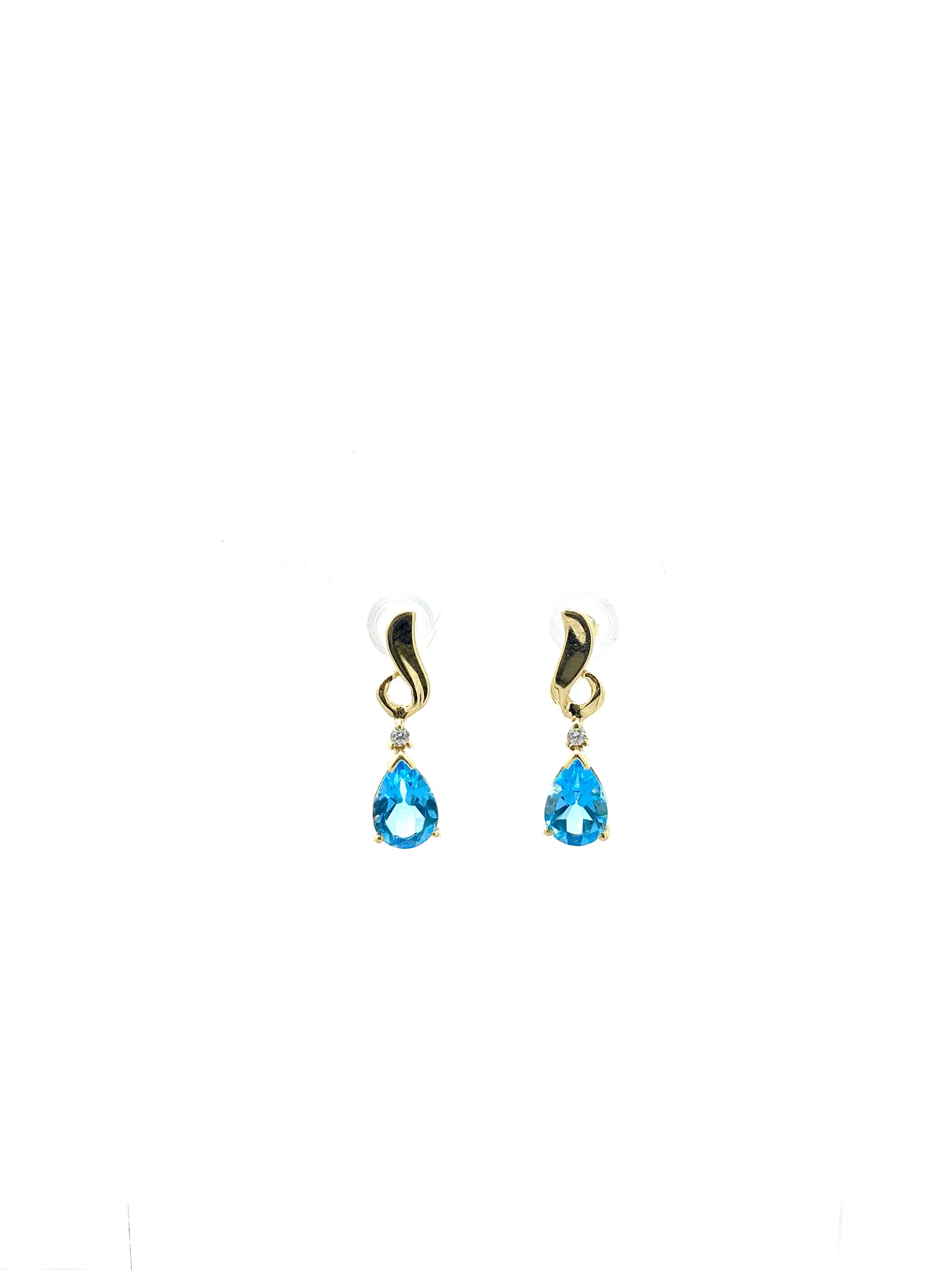 Pendientes de oro amarillo de 14 quilates con topacio azul y diamantes de 0,03 quilates